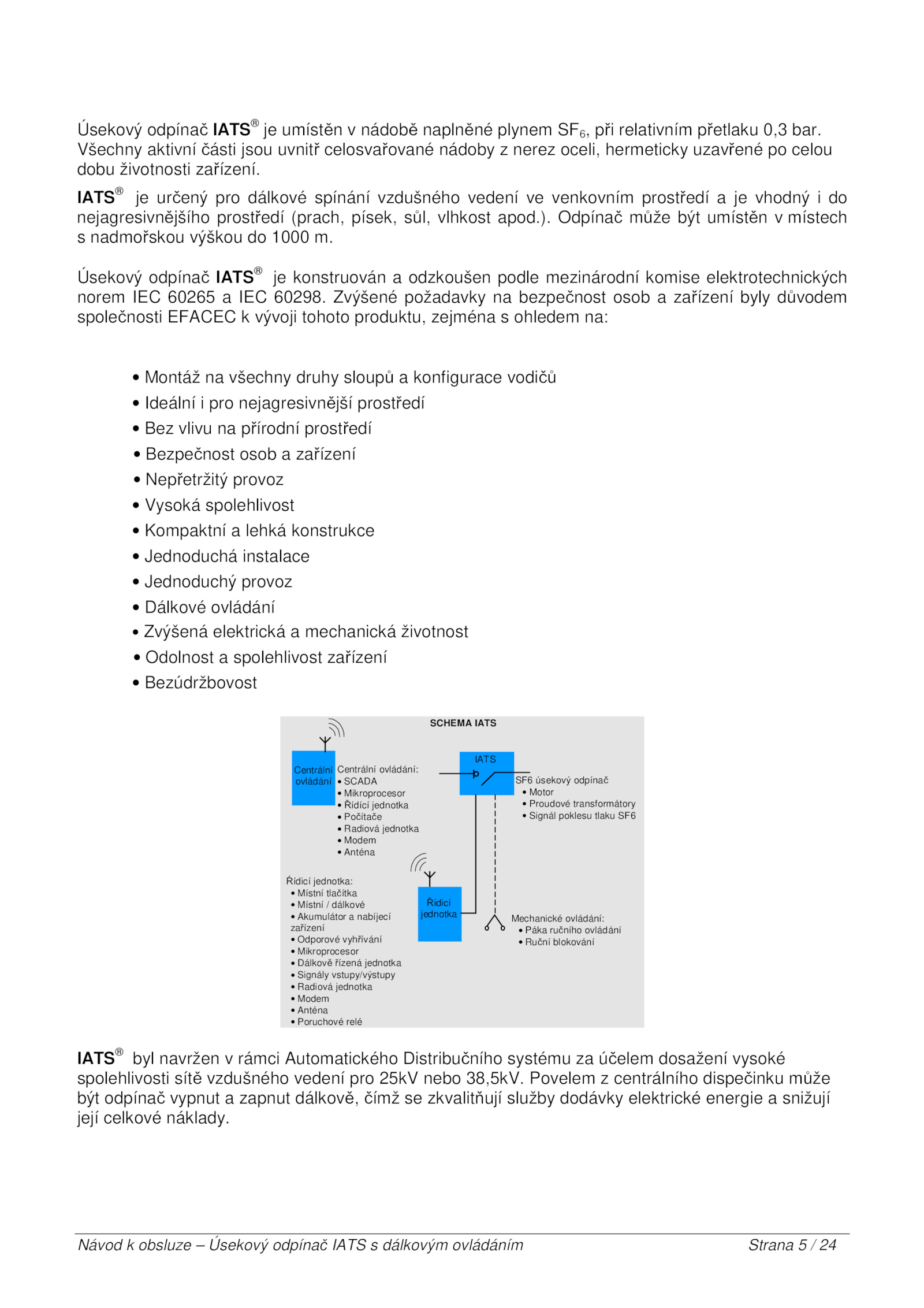 norem IEC 60265 IEC 60298.Návod obsluze Úsekový odpínač IATS dálkovým ovládáním Strana 24