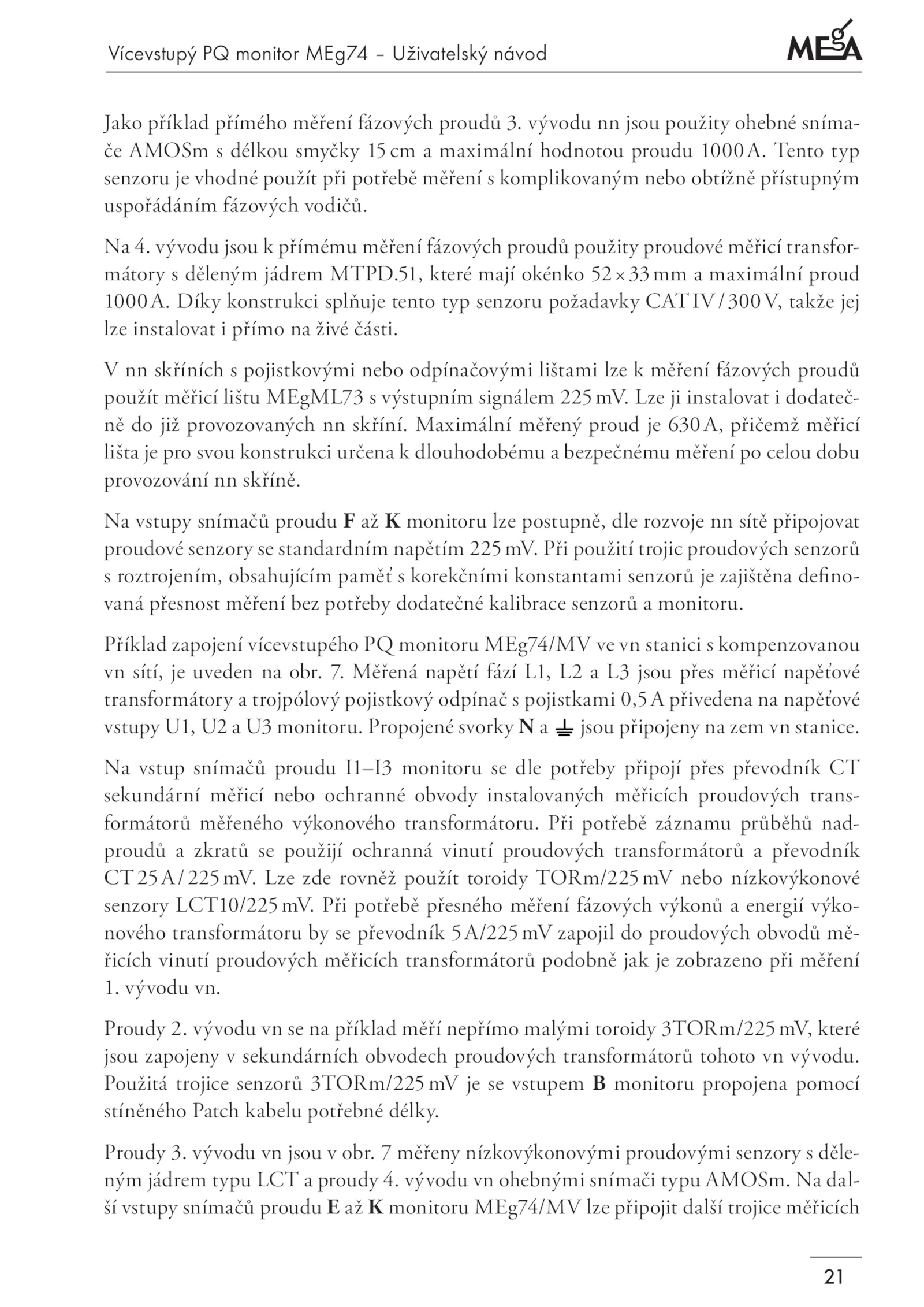 ší vstupy snímačů proudu monitoru MEg74/MV lze připojit další trojice měřicích