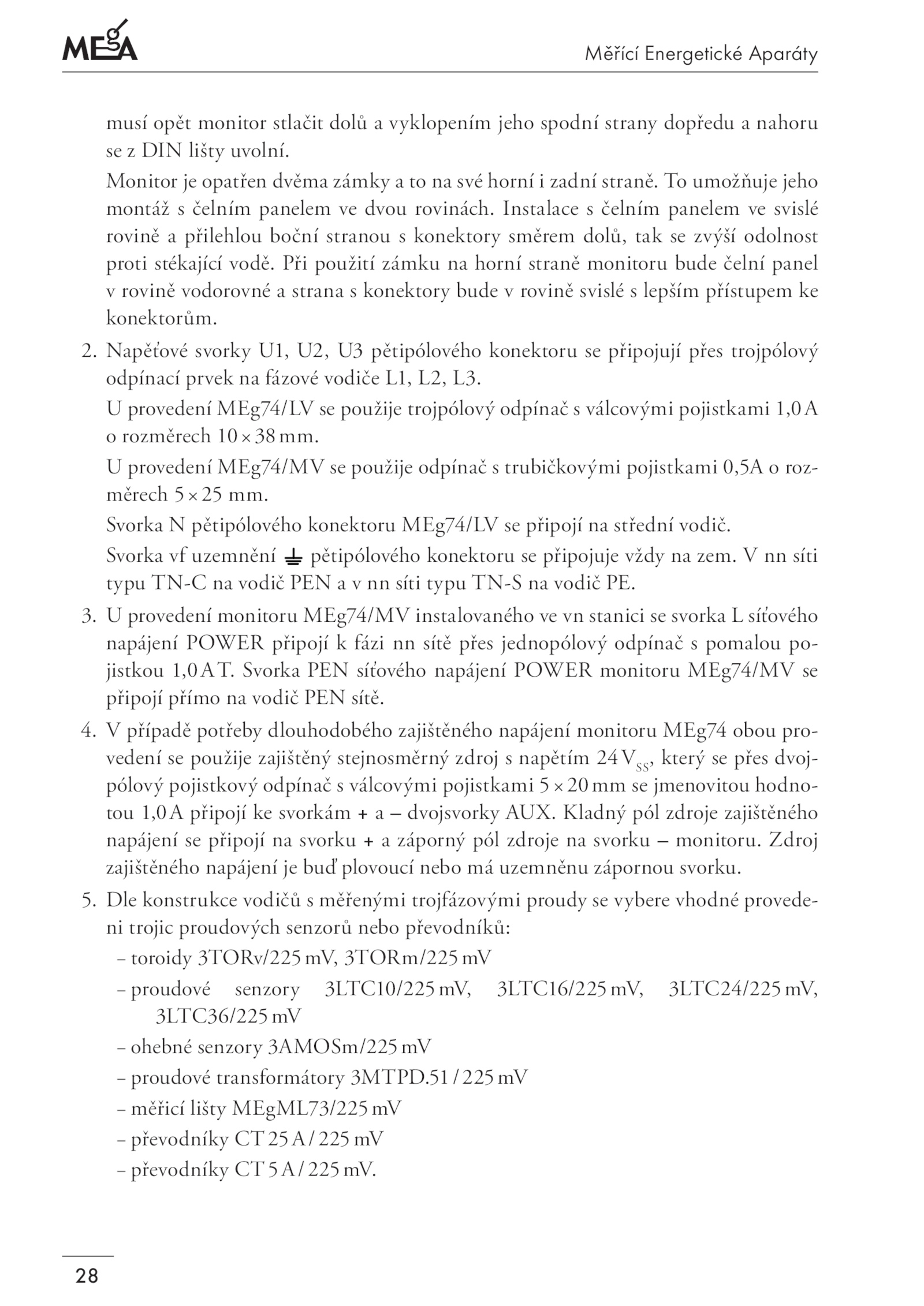 U provedení MEg74/LV použije trojpólový odpínač válcovými pojistkami 1,0A