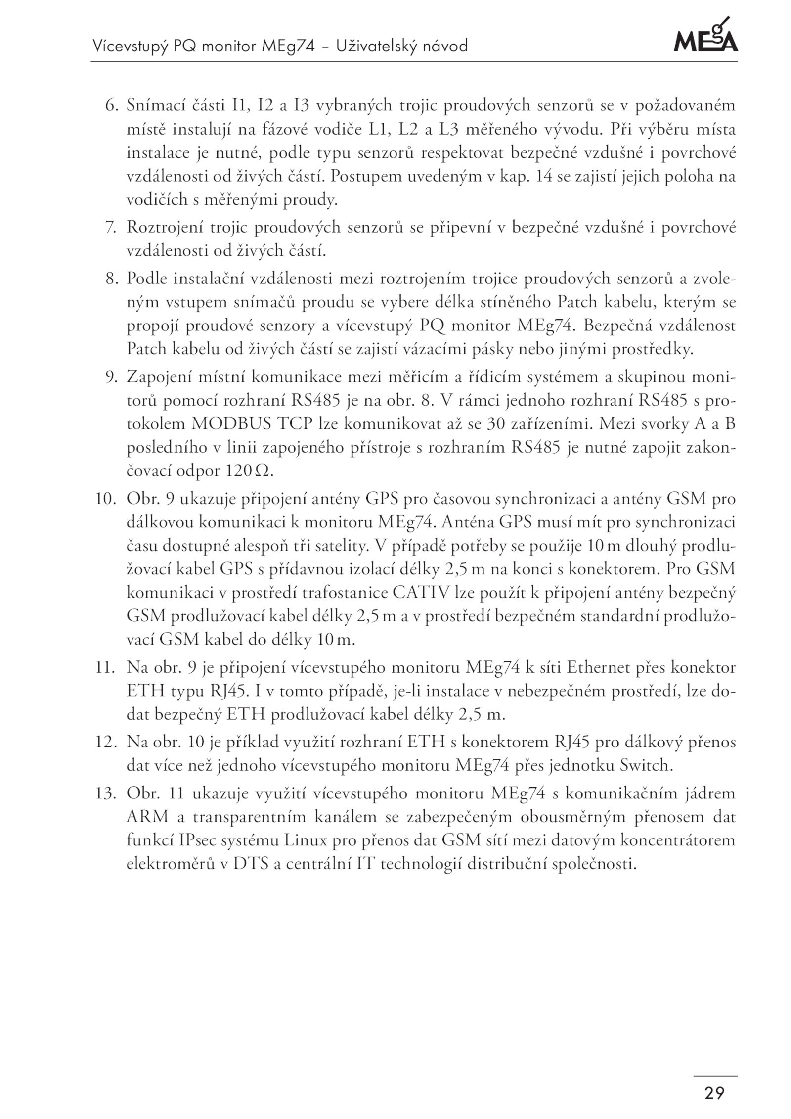 dálkovou komunikaci monitoru MEg74. tomto případě, je-li instalace nebezpečném prostředí, lze do-