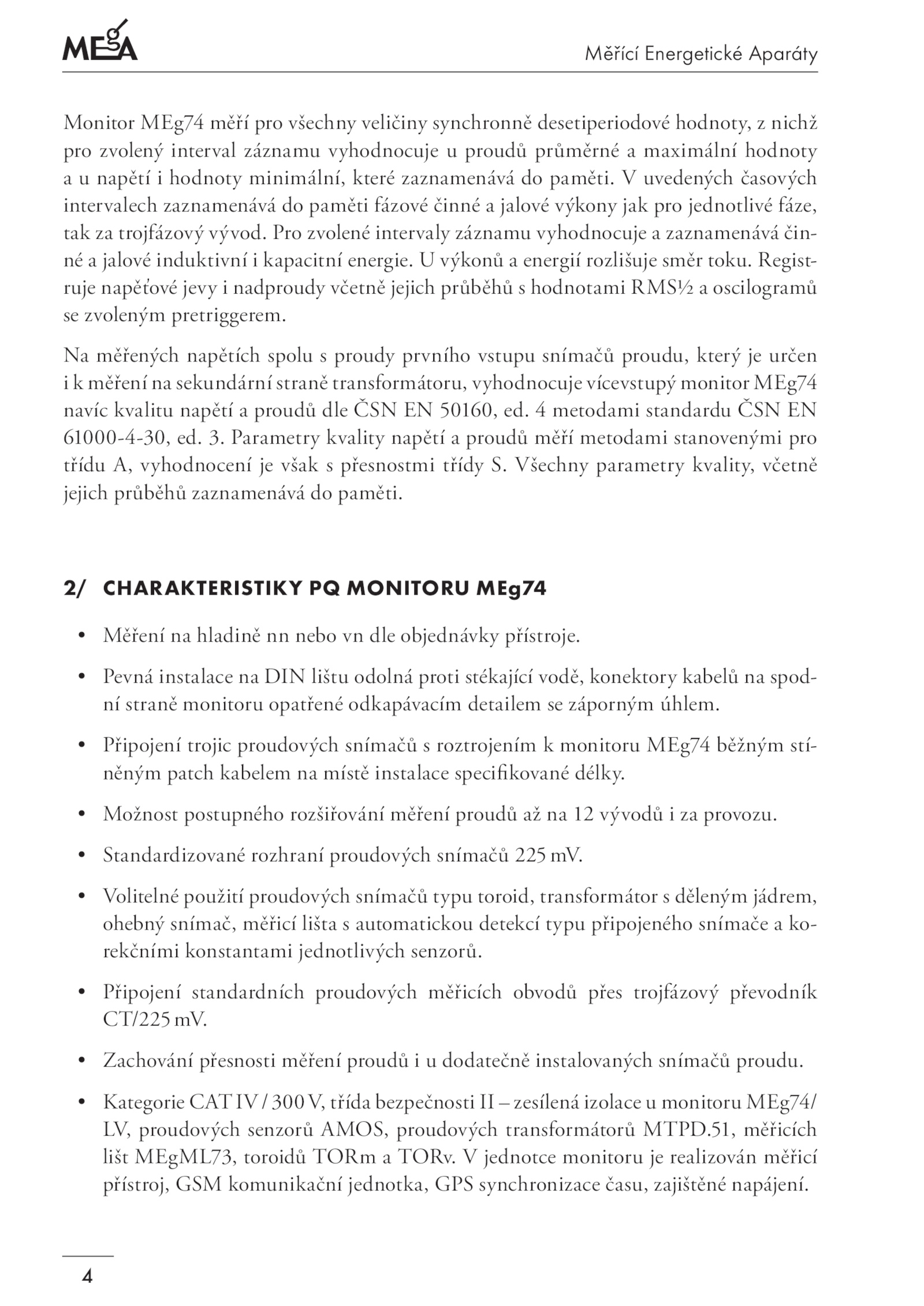 Monitor MEg74 měří pro všechny veličiny synchronně desetiperiodové hodnoty, nichž