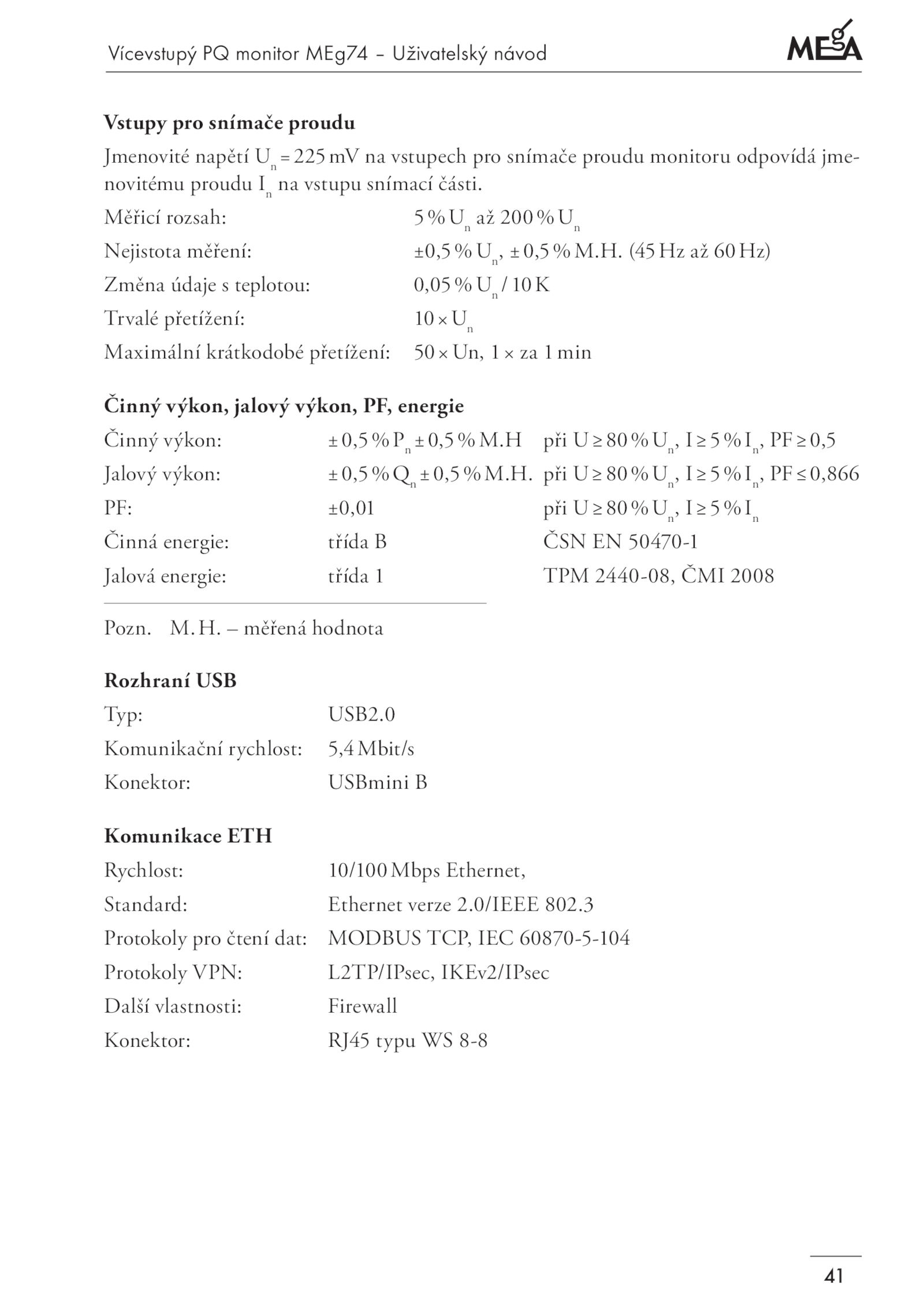 Standard: Ethernet verze 2.Vícevstupý monitor MEg74 Uživatelský návod