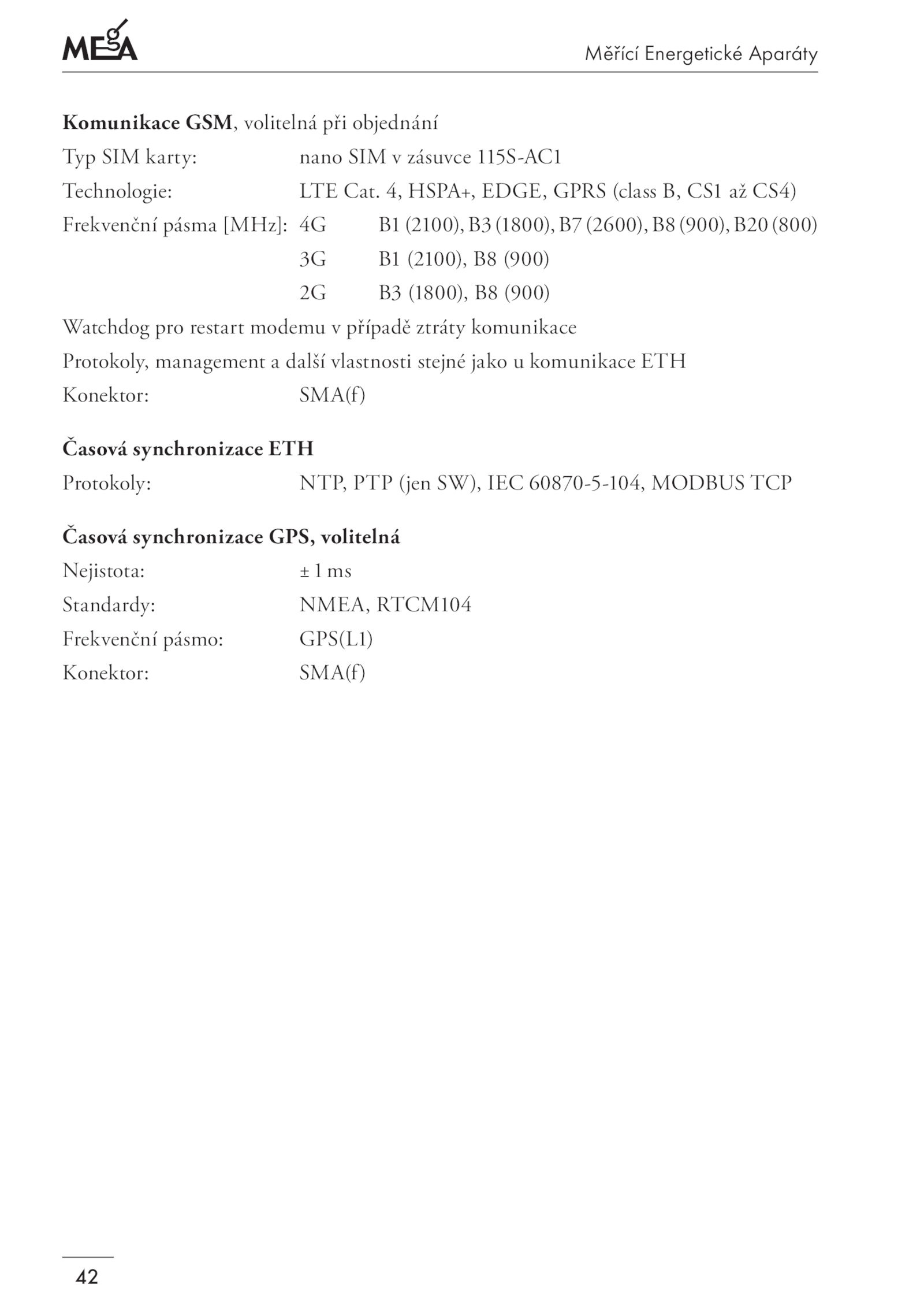 Protokoly: NTP, PTP (jen SW), IEC 60870-5-104, MODBUS TCP