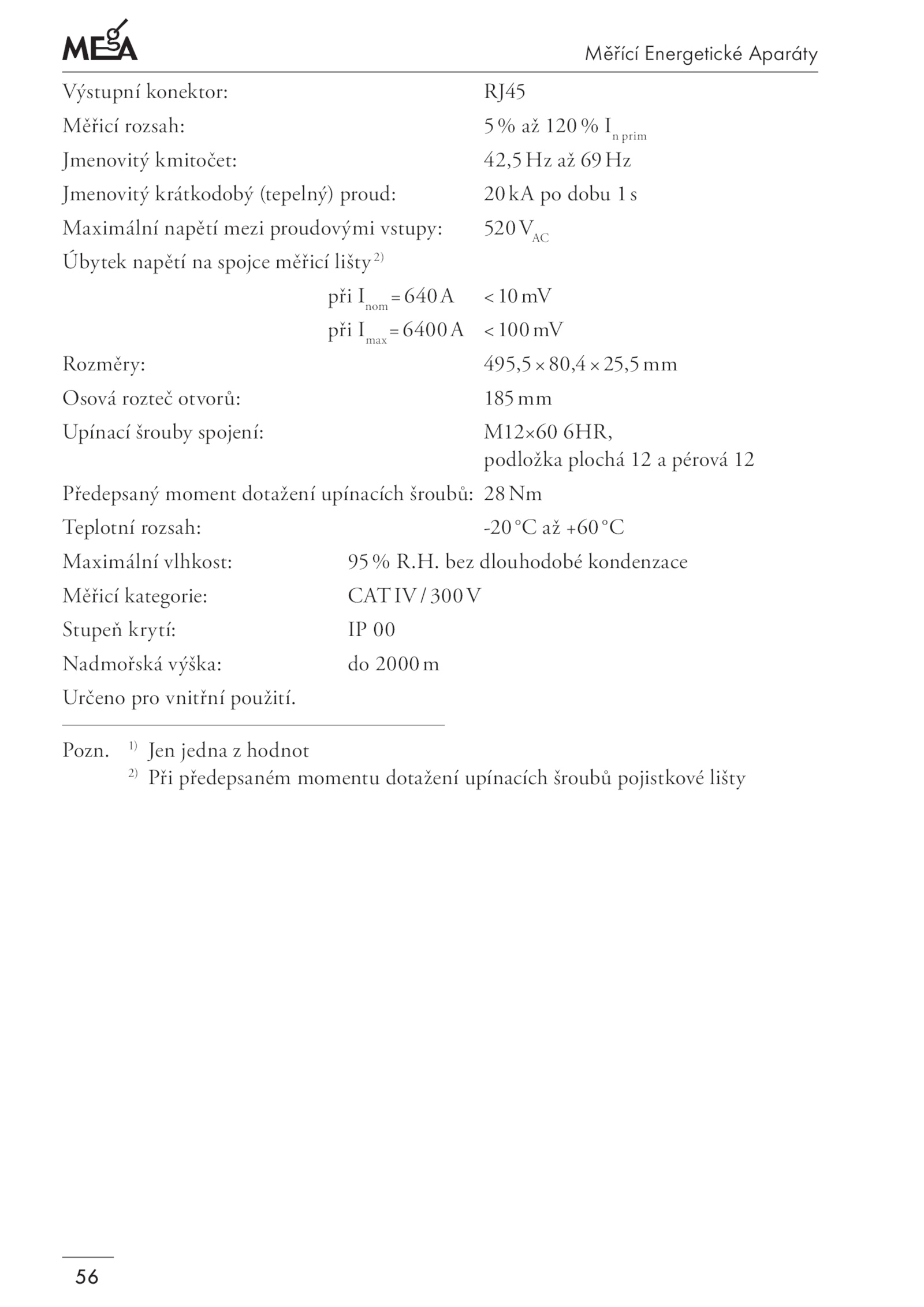 Jmenovitý krátkodobý (tepelný) proud: 20kA dobu 1s
