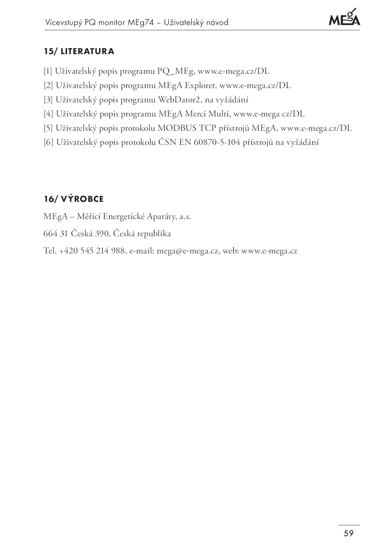 [2] Uživatelský popis programu MEgA Explorer, www. +420 545 214 988, e-mail: mega@e-mega.cz