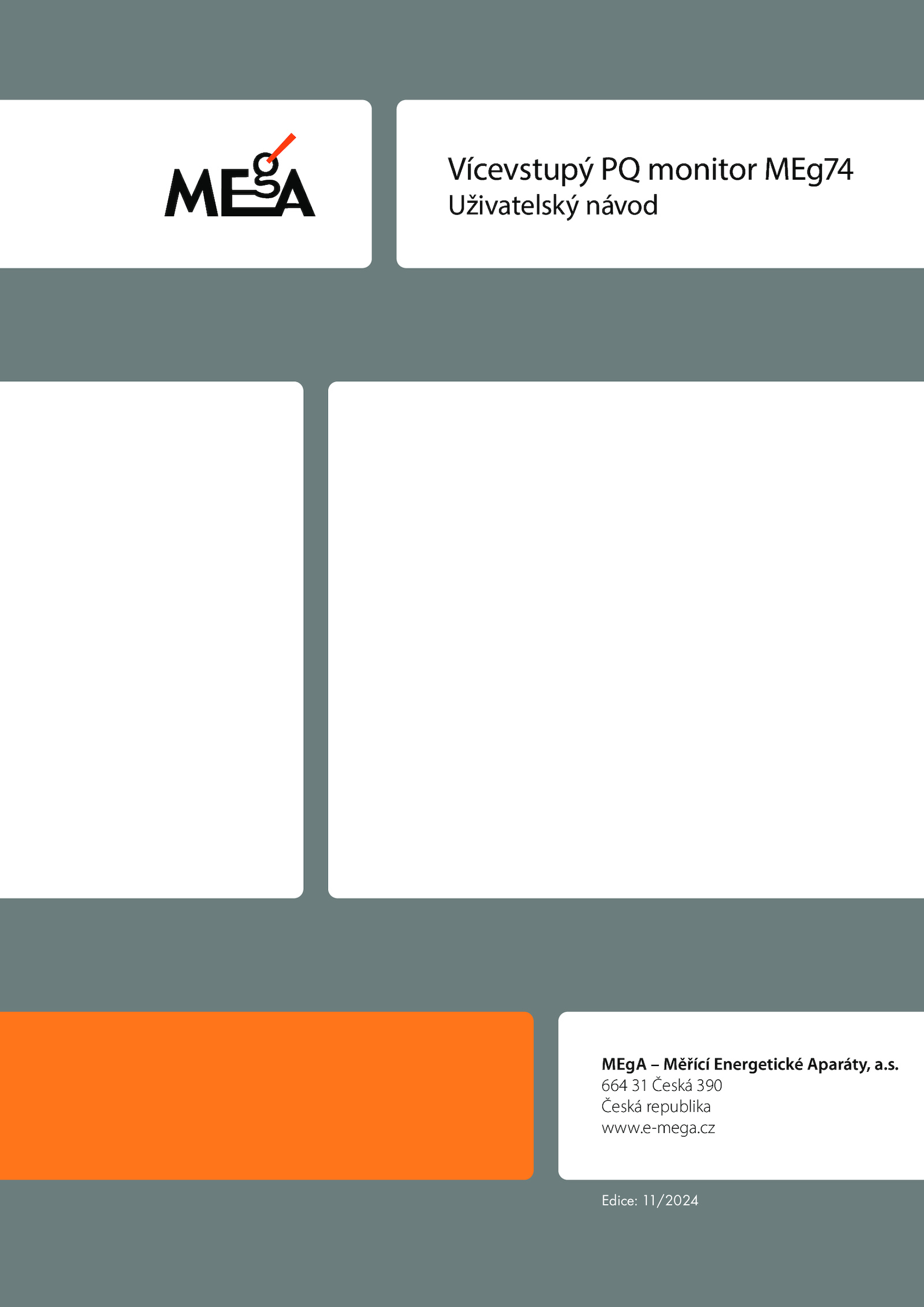 MEgA Měřící Energetické Aparáty, a.cz Edice: 11/2024 Vícevstupý monitor MEg74 Uživatelský návod .s.e-mega. 664 Česká 390 Česká republika www