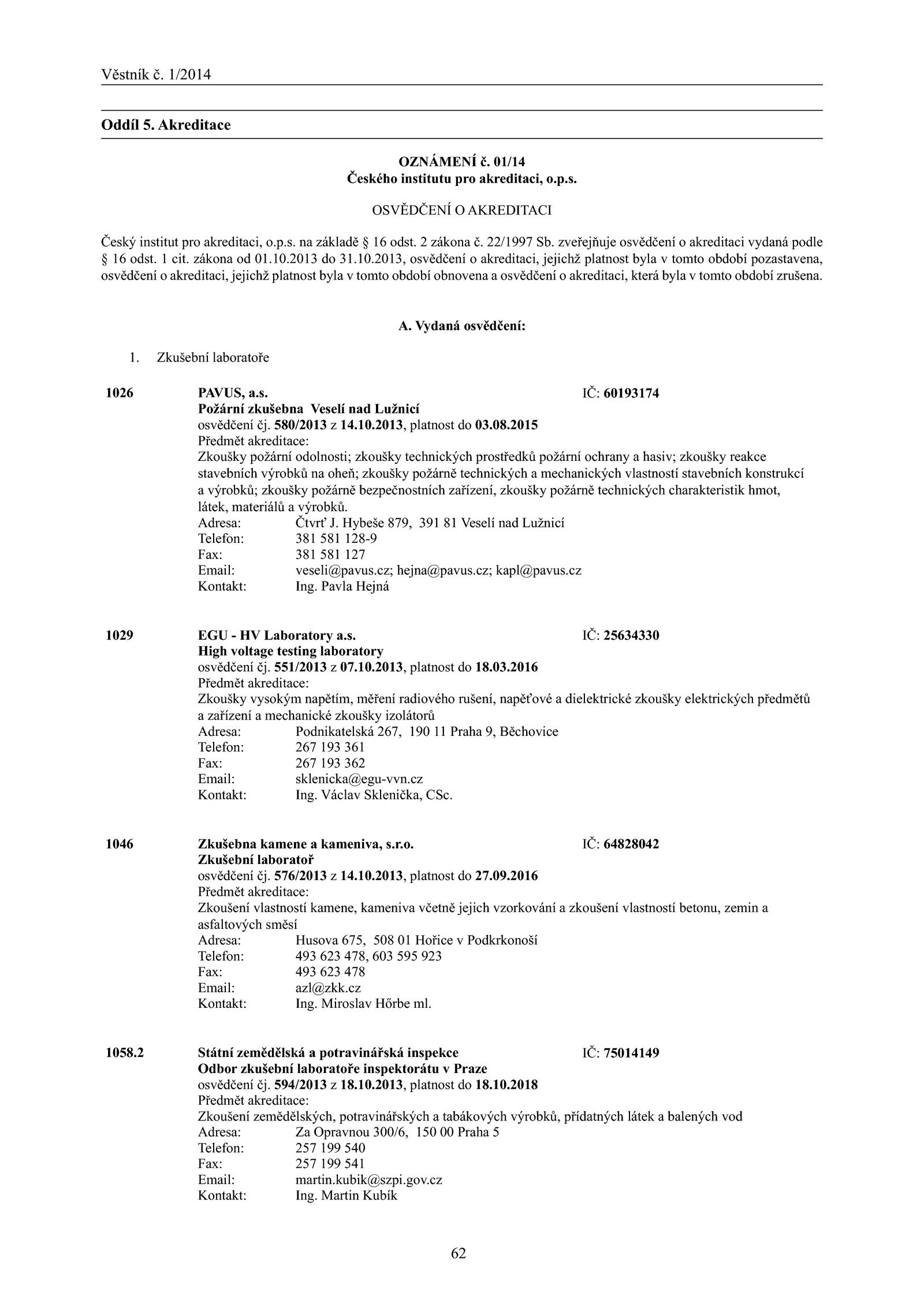 Email: veseli@pavus. 576/2013 14. základě odst.03.08. zveřejňuje osvědčení akreditaci vydaná podle