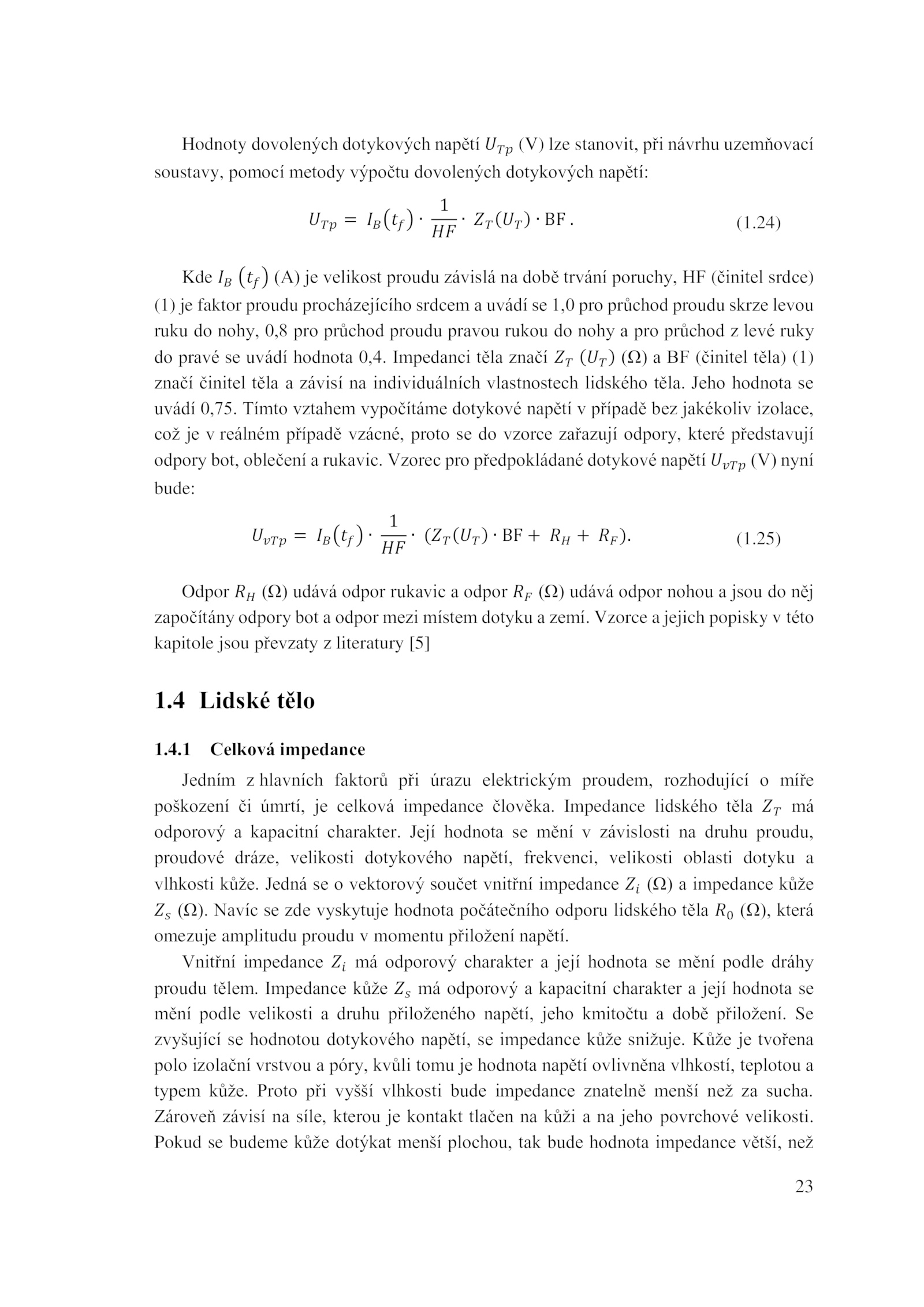 započítány odpory bot odpor mezi místem dotyku zemí.4 Lidské tělo