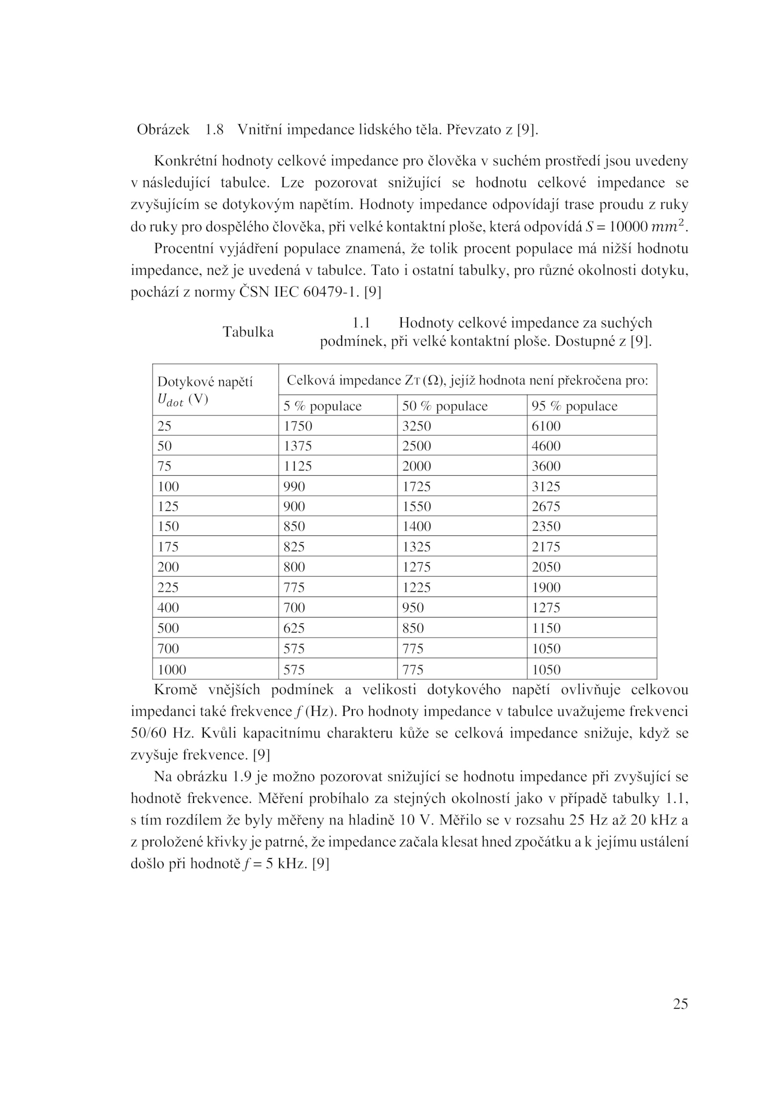 došlo při hodnotě kHz.8 Vnitřní impedance lidského těla.