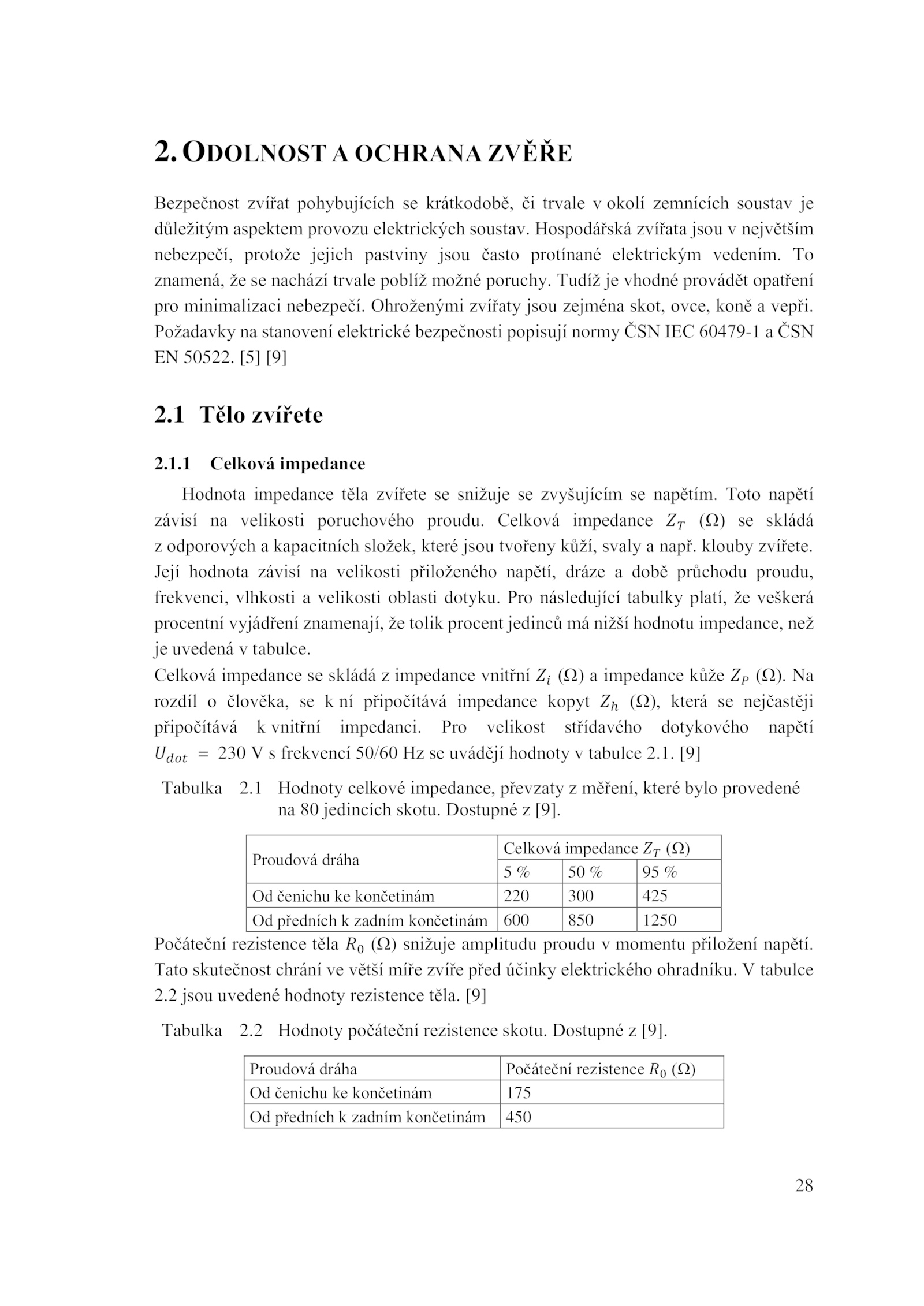 rozdíl člověka, připočítává impedance kopyt (Ω), která nejčastěji