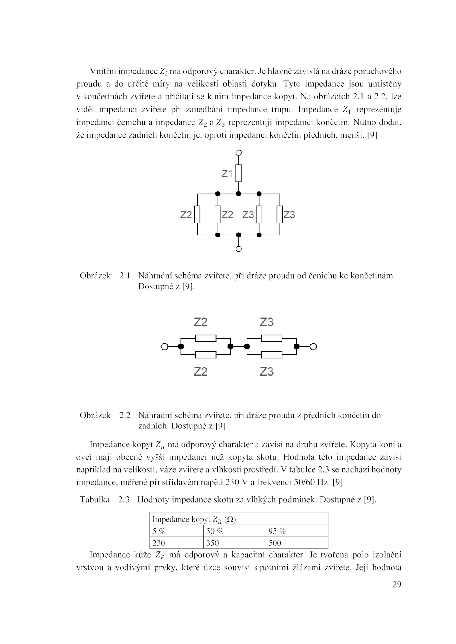 vidět impedanci zvířete při zanedbání impedance trupu.3 Hodnoty impedance skotu vlhkých podmínek. Nutno dodat,