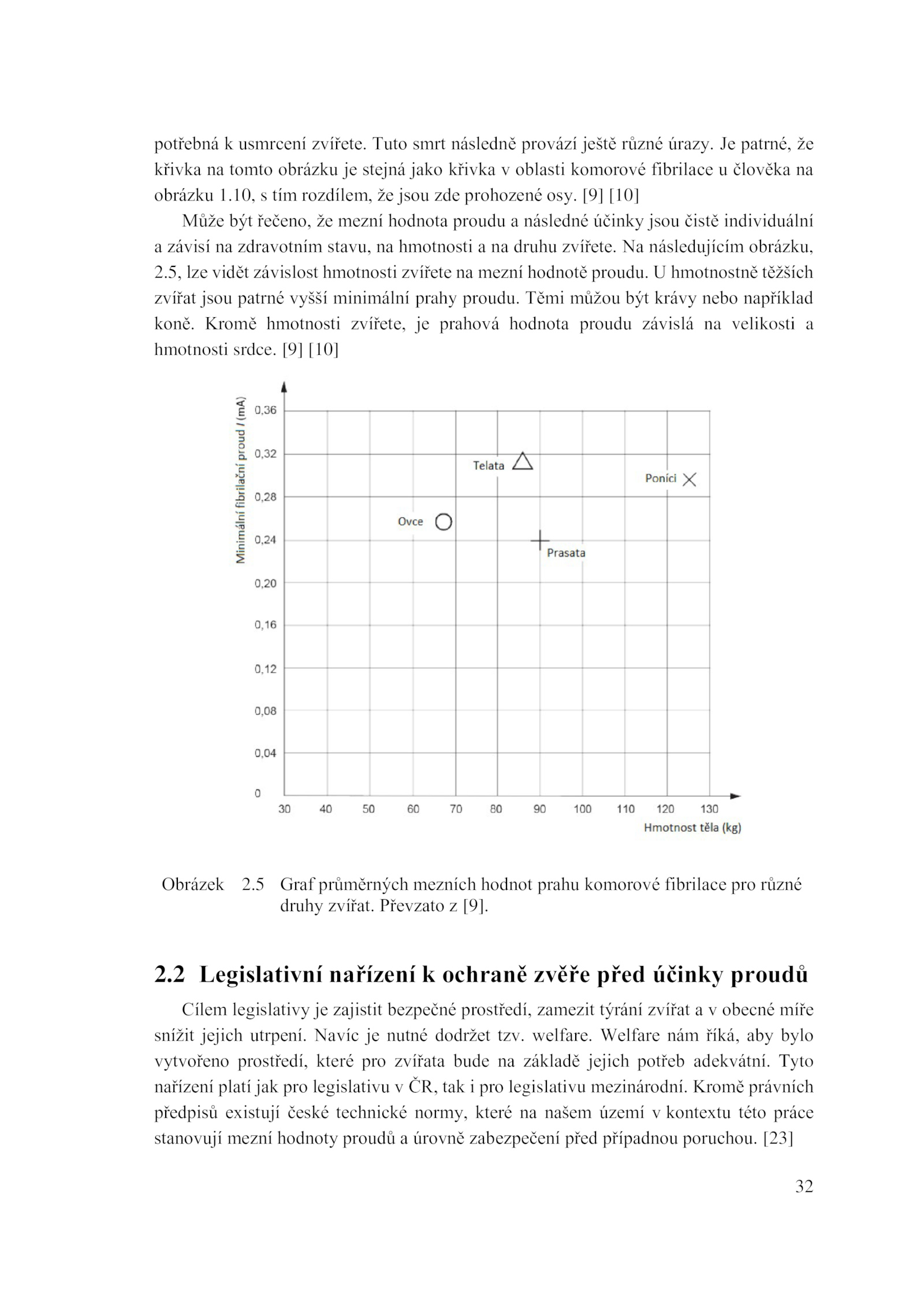 potřebná usmrcení zvířete.5, lze vidět závislost hmotnosti zvířete mezní hodnotě proudu. Tyto