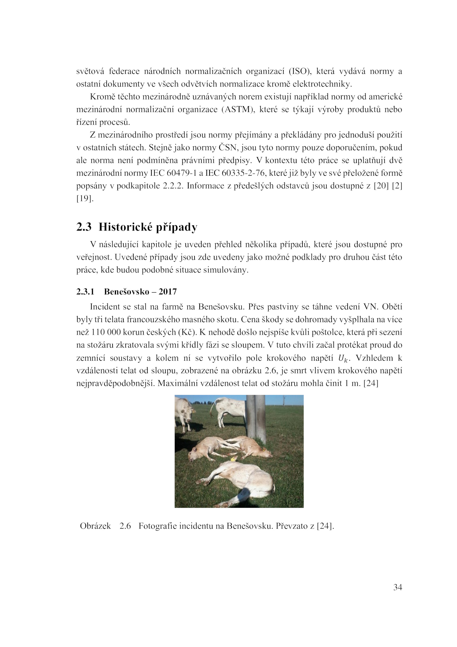 2. Přes pastviny táhne vedení VN. Převzato [24].6 Fotografie incidentu Benešovsku. Stejně jako normy ČSN, jsou tyto normy pouze doporučením, pokud