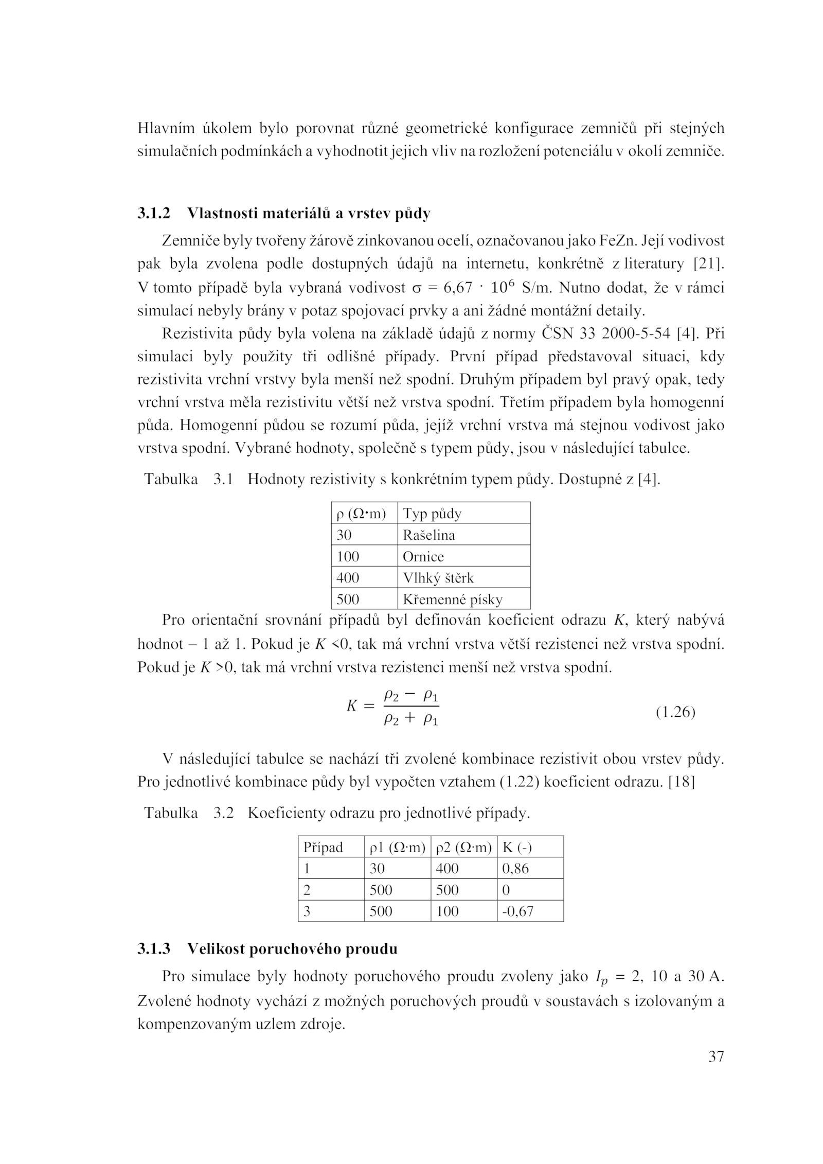 Rezistivita půdy byla volena základě údajů normy ČSN 2000-5-54 [4].37