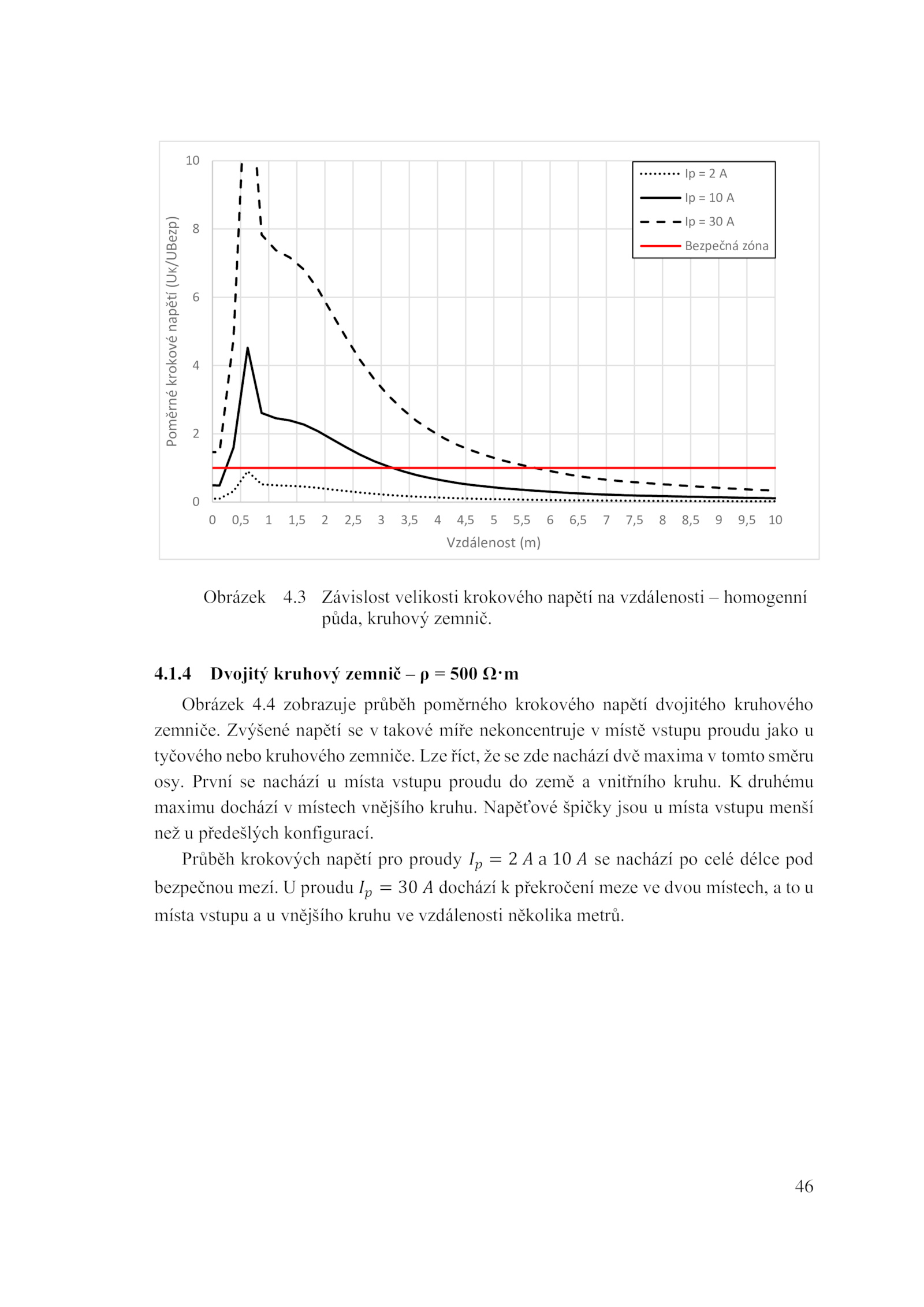 4.3 Závislost velikosti krokového napětí vzdálenosti homogenní