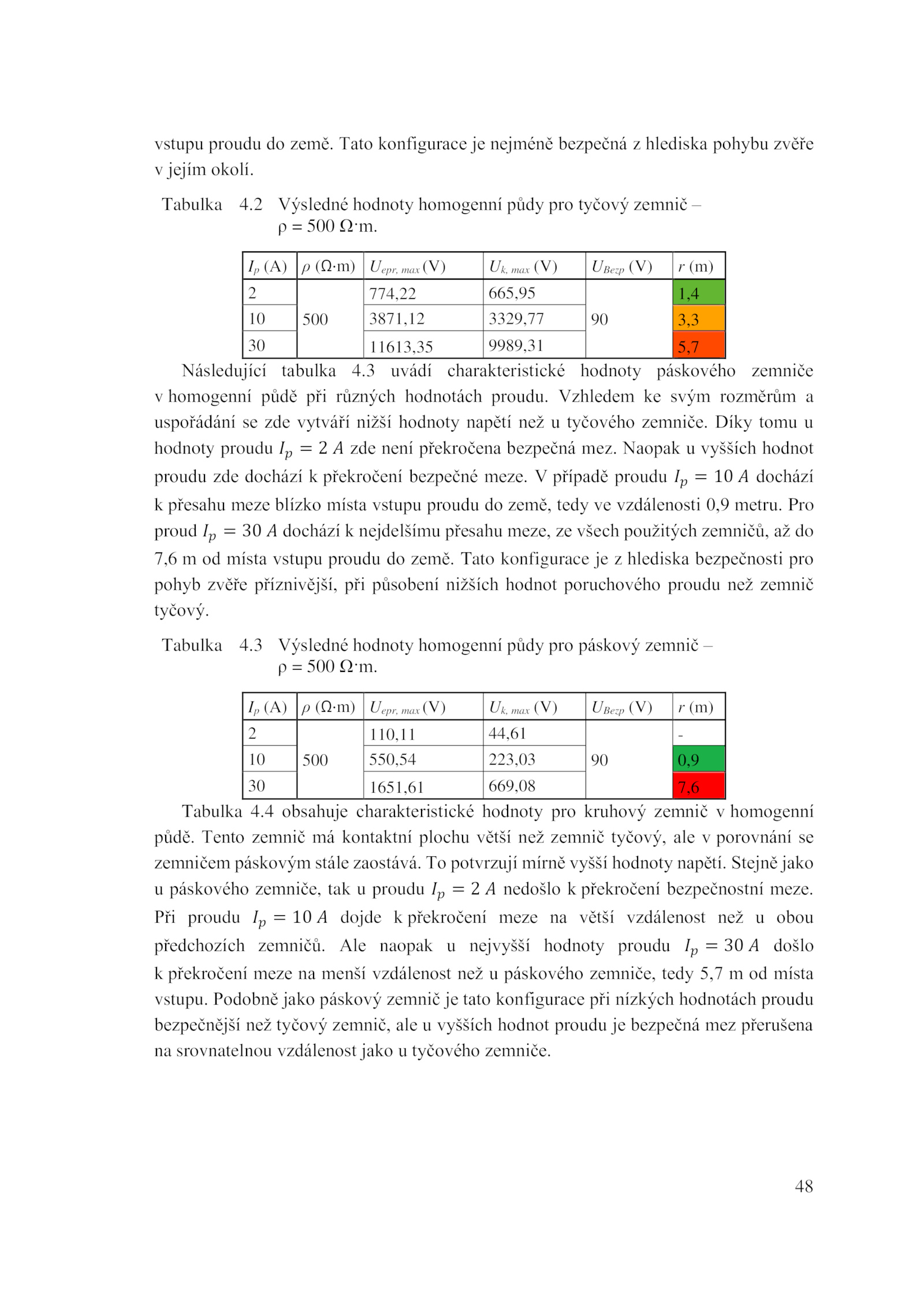 k přesahu meze blízko místa vstupu proudu země, tedy vzdálenosti 0,9 metru.3 uvádí charakteristické hodnoty páskového zemniče