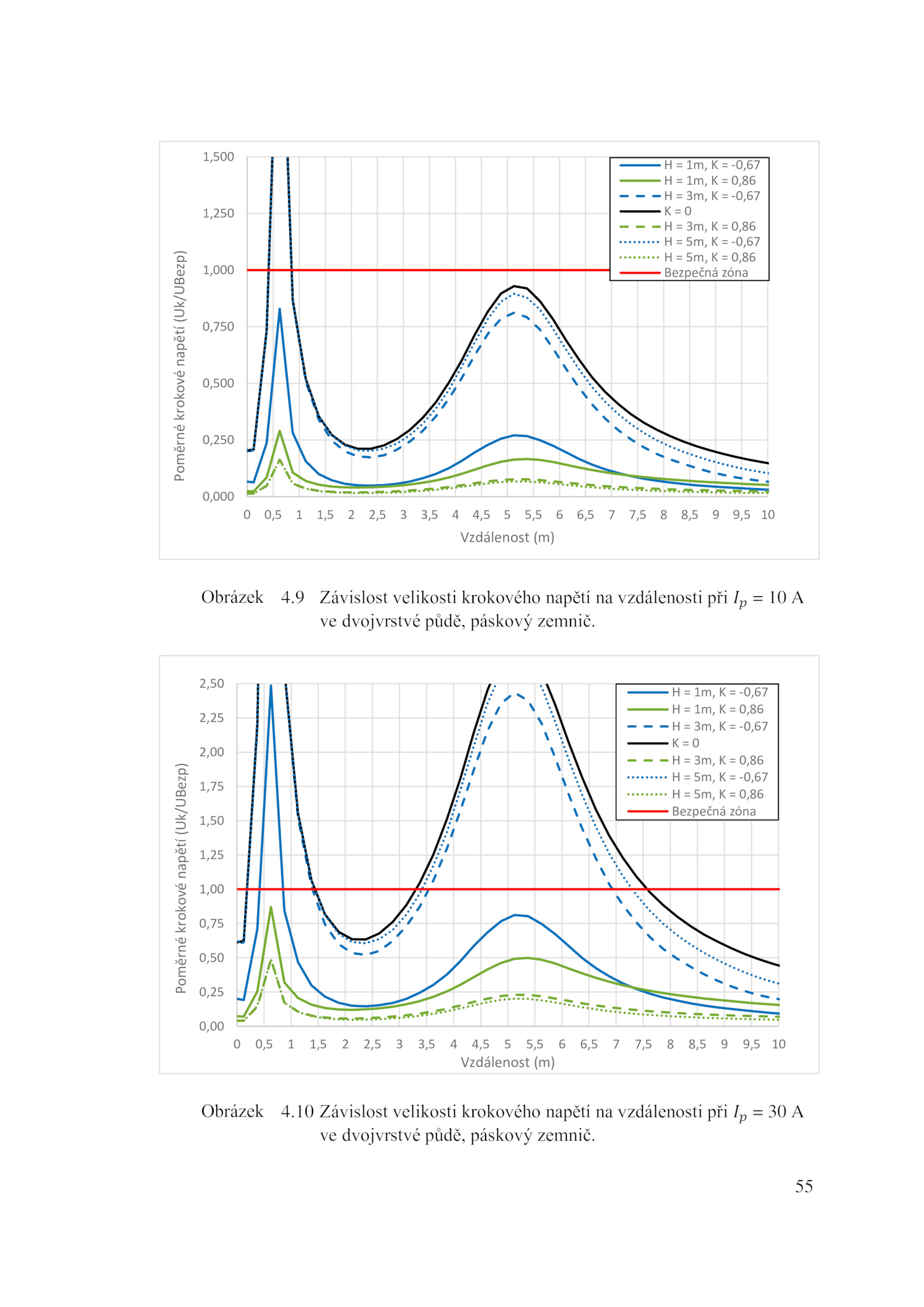 ve dvojvrstvé půdě, páskový zemnič.10 Závislost velikosti krokového napětí vzdálenosti při A