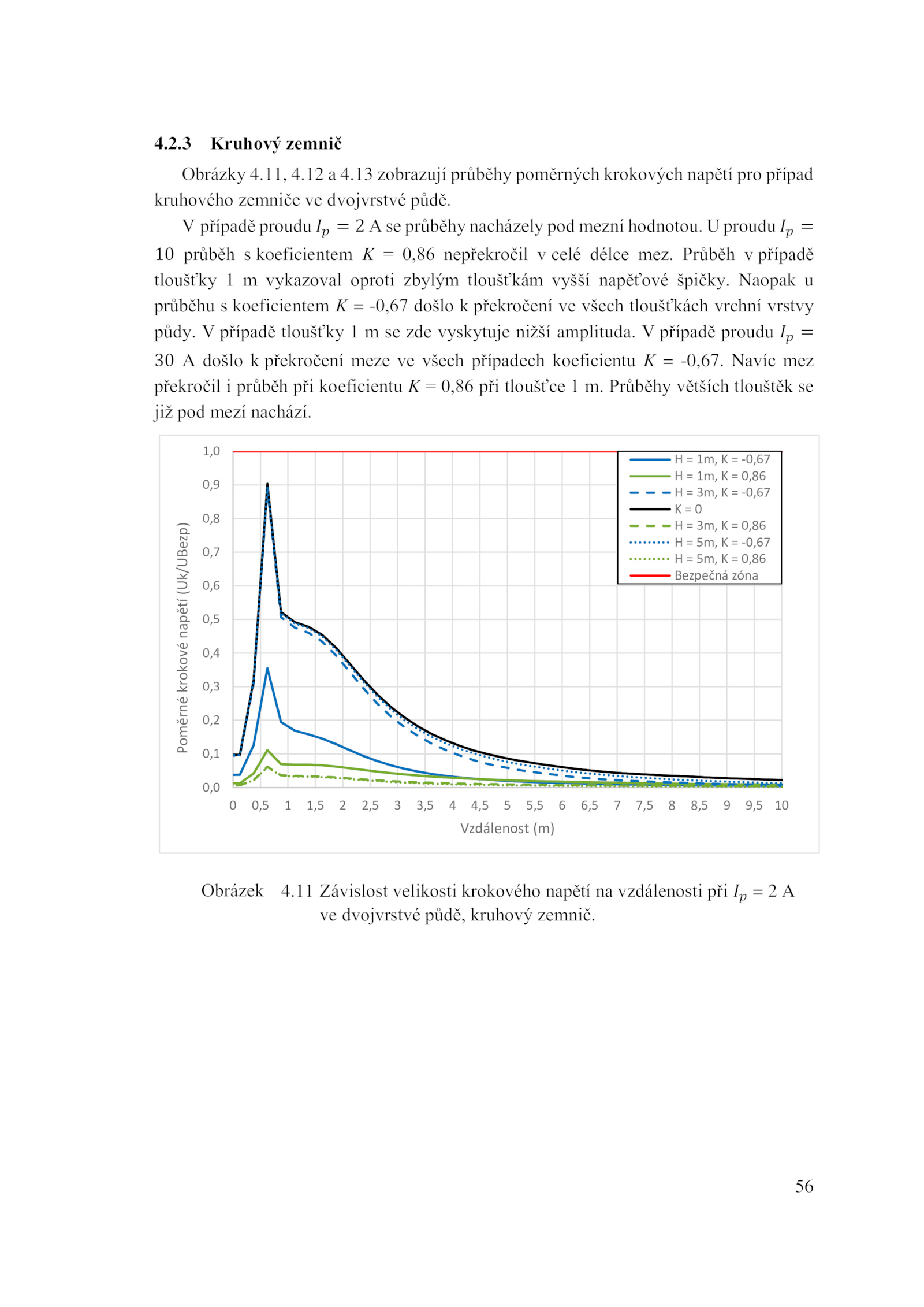 10 průběh koeficientem 0,86 nepřekročil celé délce mez.11 Závislost velikosti krokového napětí vzdálenosti při A