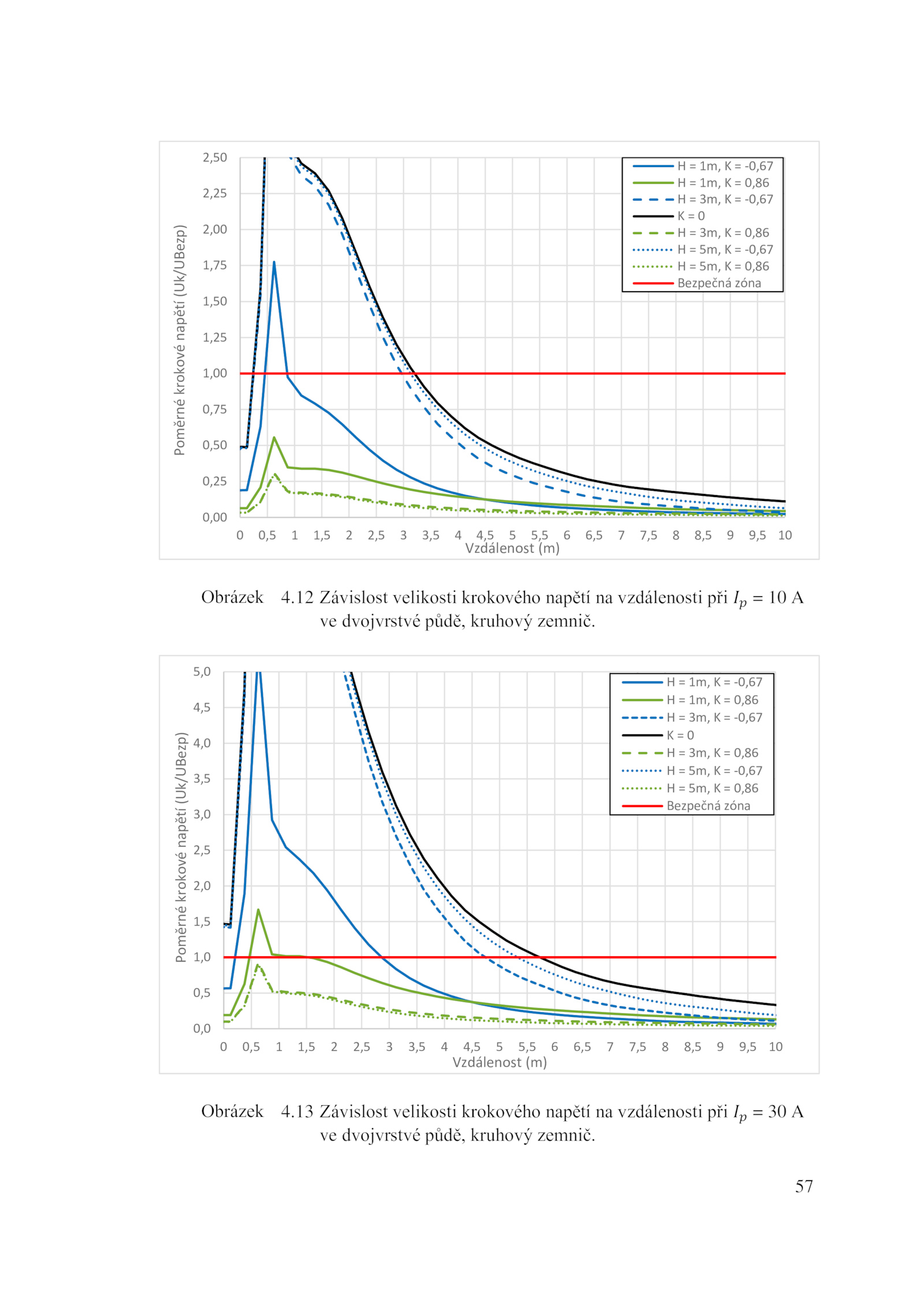 ve dvojvrstvé půdě, kruhový zemnič.13 Závislost velikosti krokového napětí vzdálenosti při A