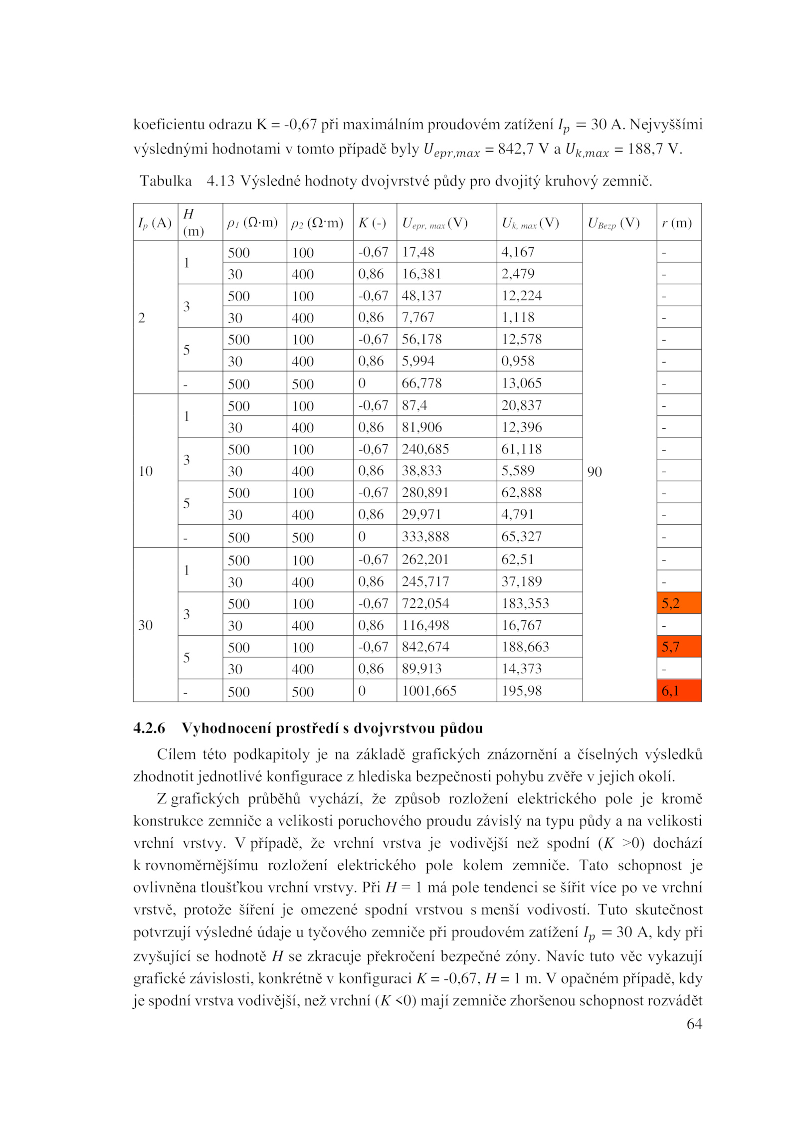 výslednými hodnotami tomto případě byly 𝑈𝑒𝑝𝑟,𝑚𝑎𝑥 842,7 𝑈𝑘,𝑚𝑎𝑥 188,7 V.6 Vyhodnocení prostředí dvojvrstvou půdou