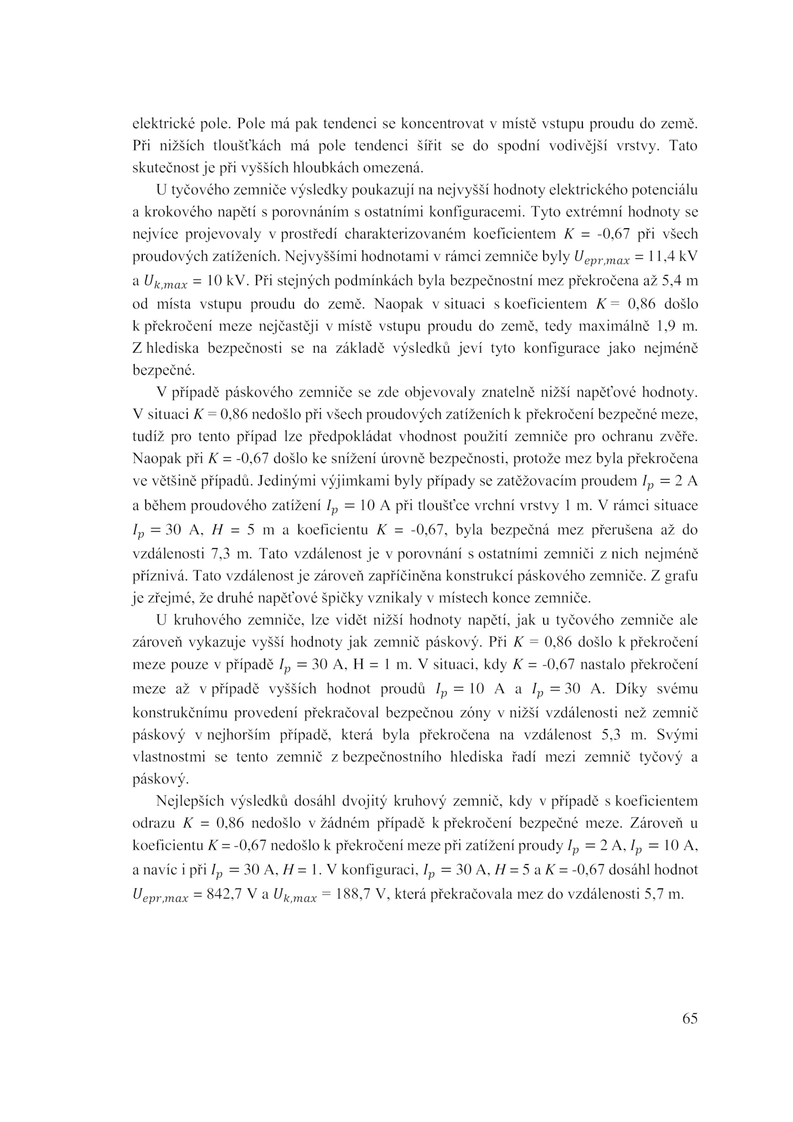 páskový. Nejvyššími hodnotami rámci zemniče byly 𝑈𝑒𝑝𝑟,𝑚𝑎𝑥 11,4 kV