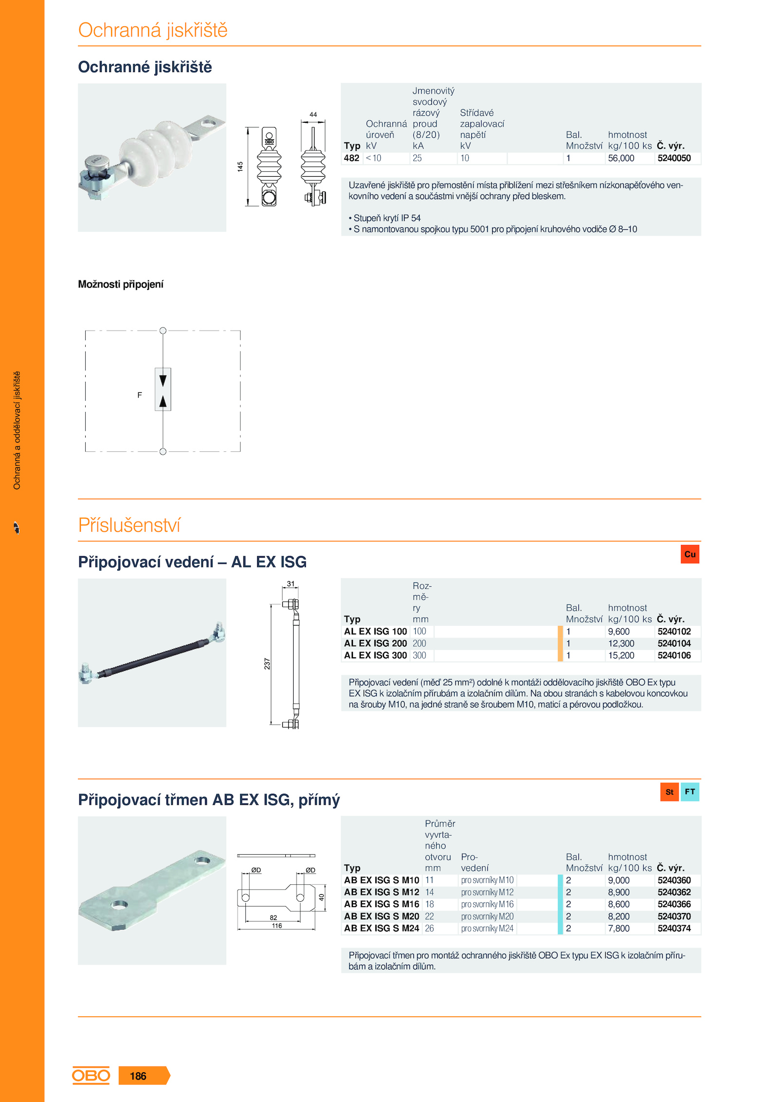 Připojovací vedení (měď mm²) odolné montáži oddělovacího jiskřiště OBO typu