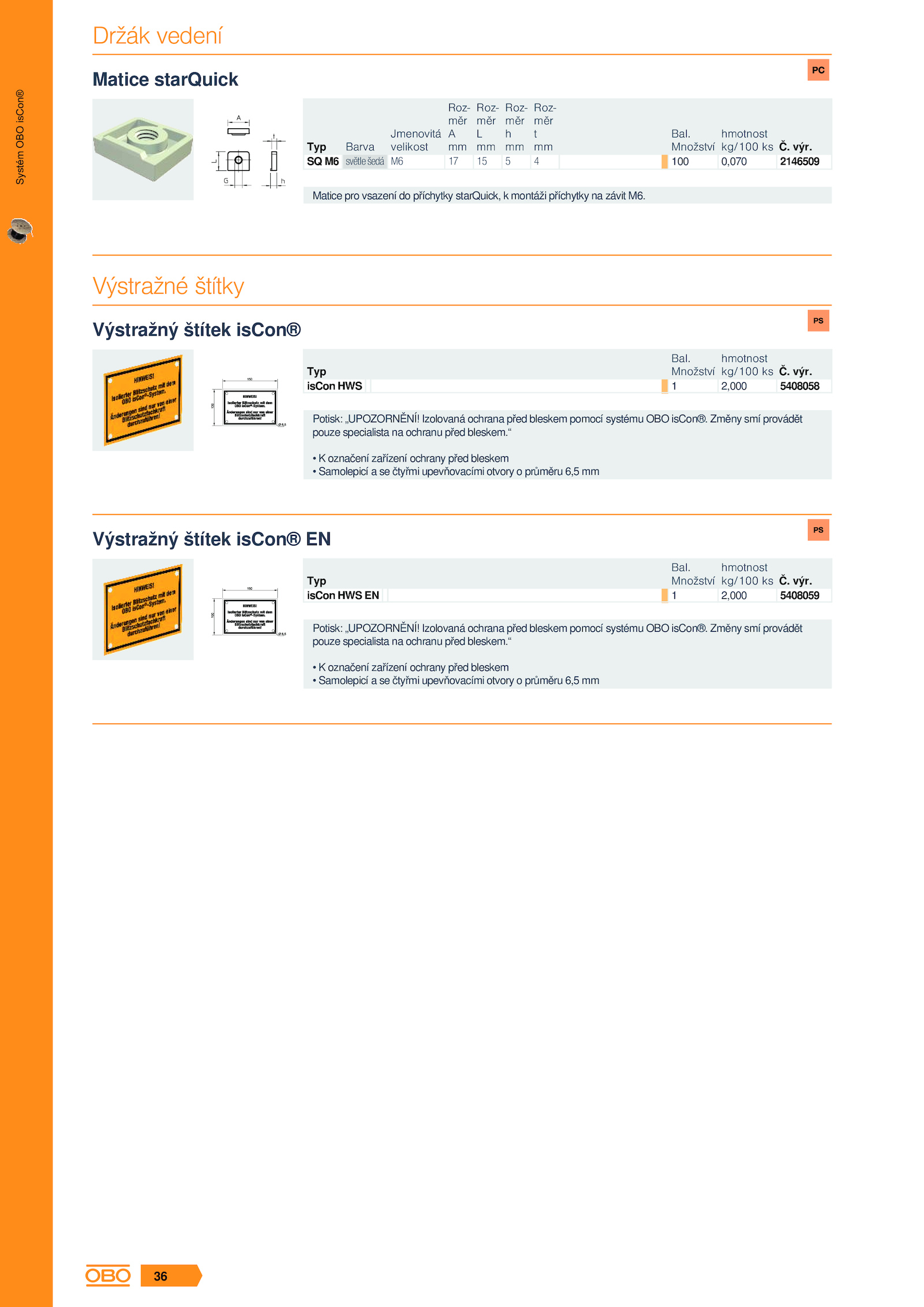Potisk: „UPOZORNĚNÍ! Izolovaná ochrana před bleskem pomocí systému OBO isCon®.