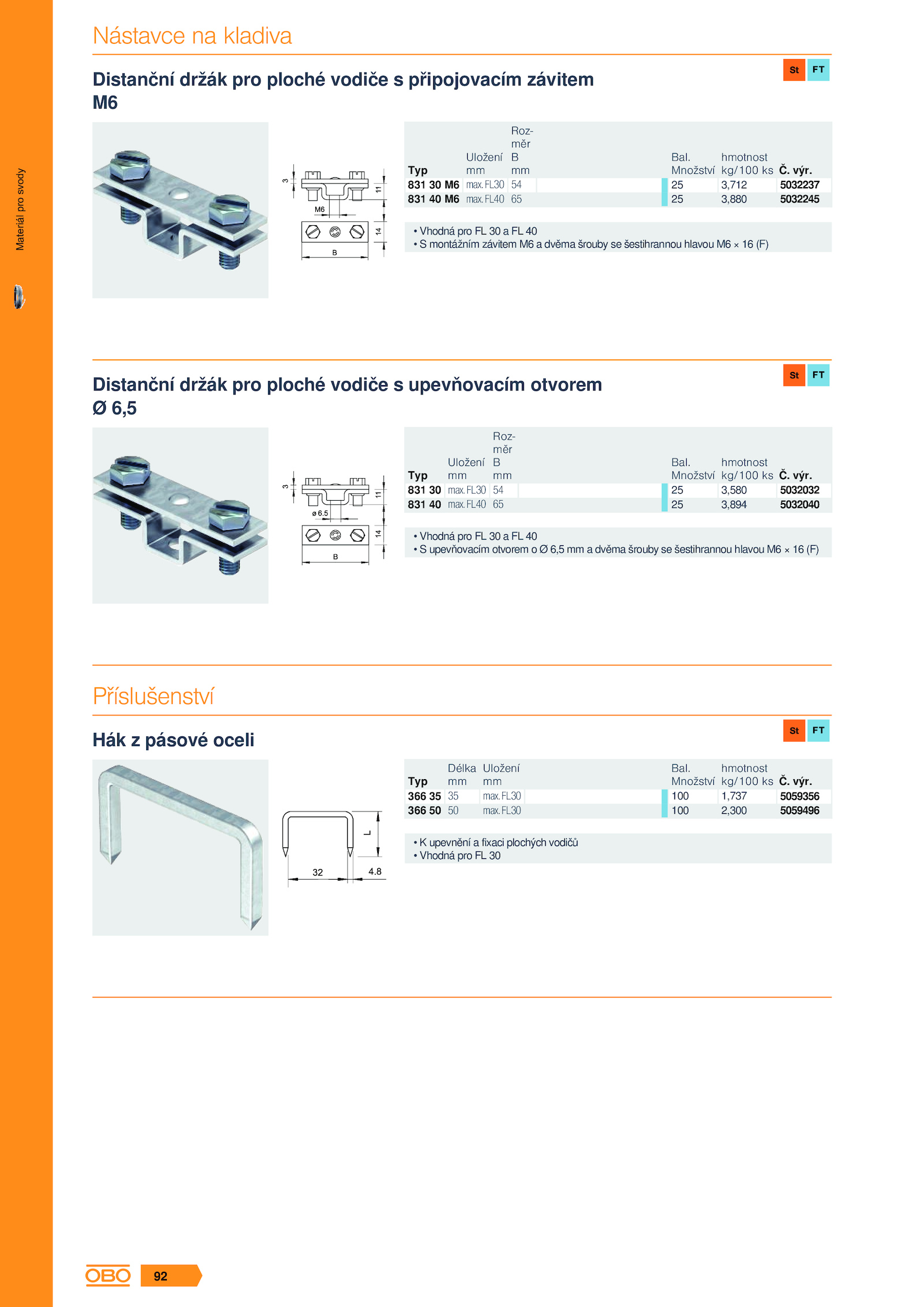 Distanční držák pro ploché vodiče upevňovacím otvorem