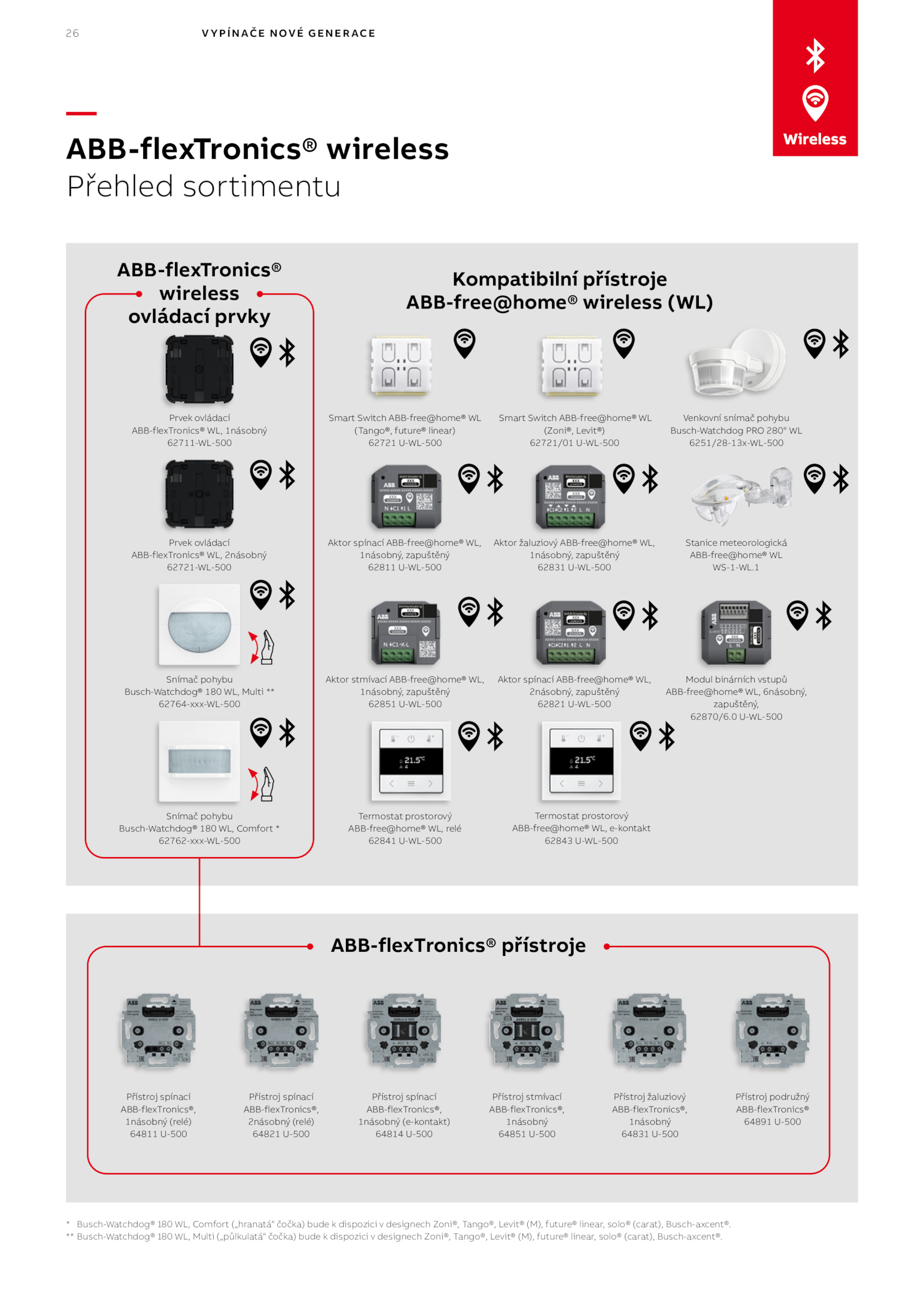 Busch-Watchdog® 180 WL, Comfort („hranatá“ čočka) bude dispozici designech Zoni®, Tango®, Levit® (M), future® linear, solo® (carat), Busch-axcent®.YPÍNAČE NOVÉ GENER ACE