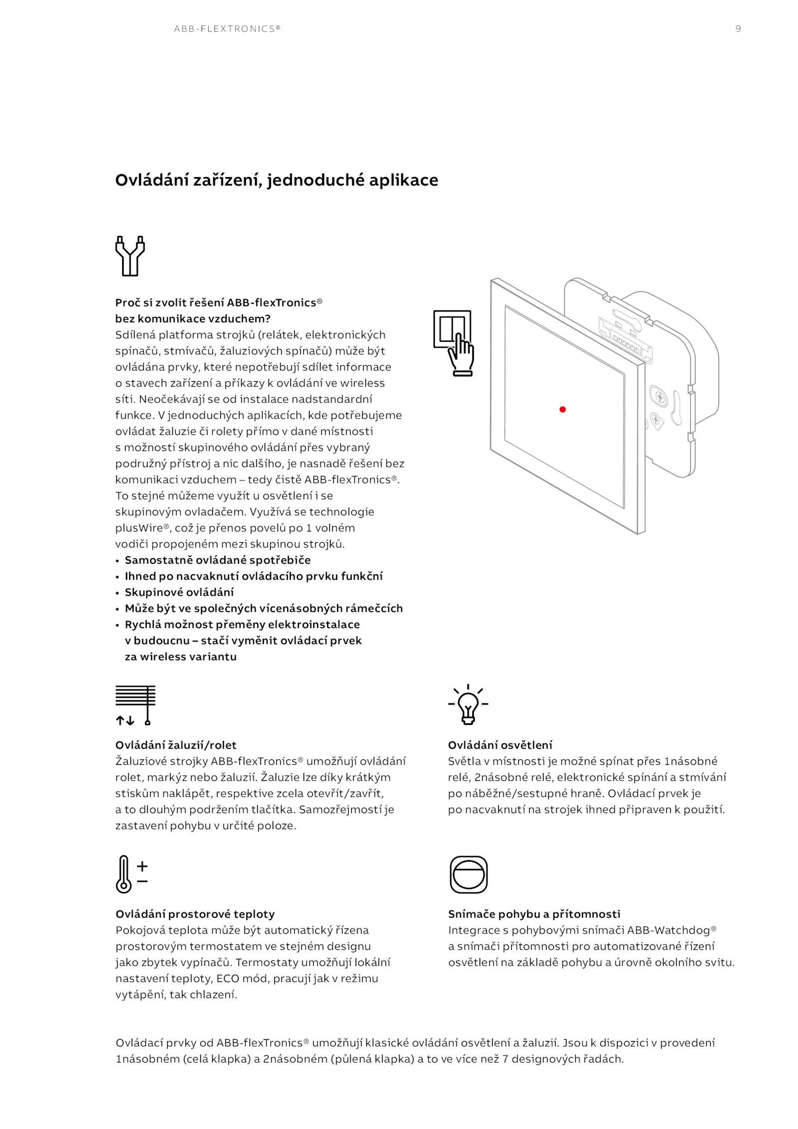 Ovládací prvky ABB-flexTronics® umožňují klasické ovládání osvětlení žaluzií. Jsou dispozici provedení