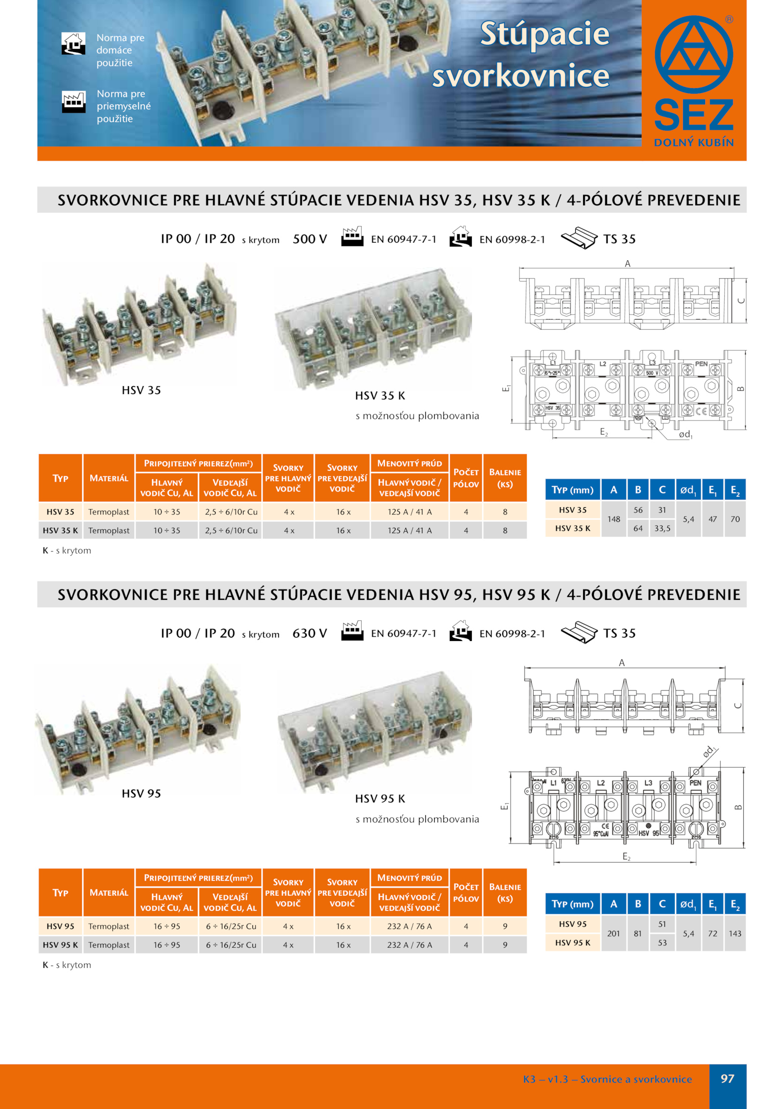 SVORKOVNICE PRE HLAVNÉ STÚPACIE VEDENIA HSV 95, HSV 4-PÓLOVÉ PREVEDENIE