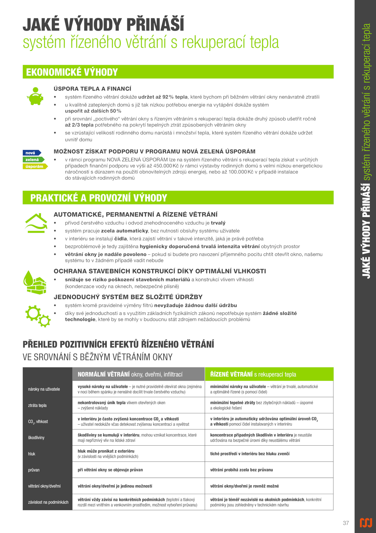• rámci programu NOVÁ ZELENÁ ÚSPORÁM lze systém řízeného větrání rekuperací tepla získat určitých
