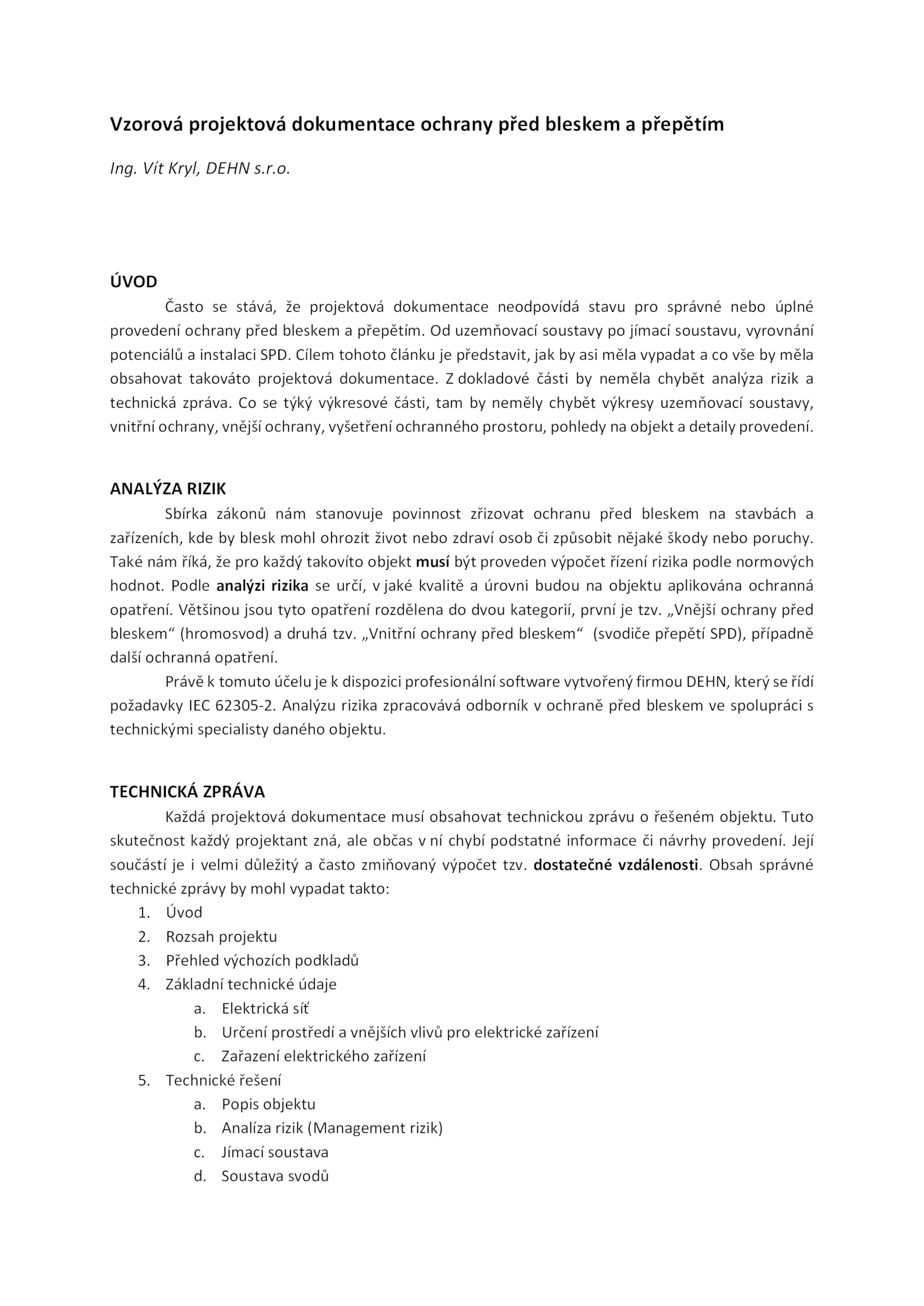 bleskem“ (hromosvod) druhá tzv. Vít Kryl, DEHN s. Tuto