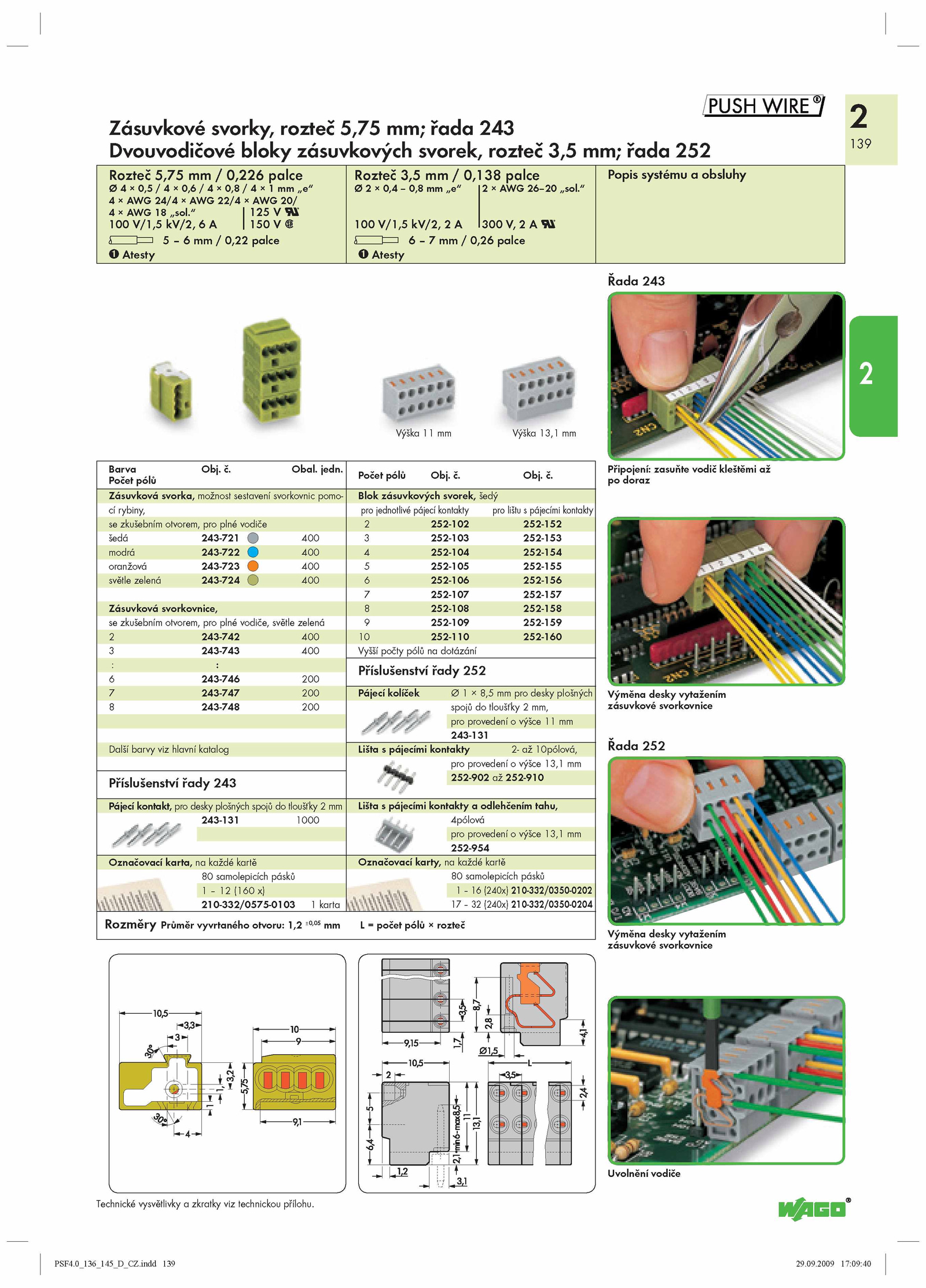 č.Zásuvkové svorky, rozteč 5,75 mm; řada 243
