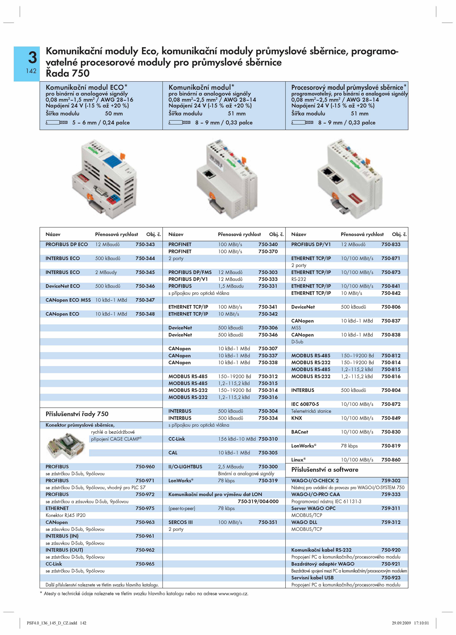 PROFIBUS ECO MBaudů 750-343 PROFINET 100 MBit/s 750-340