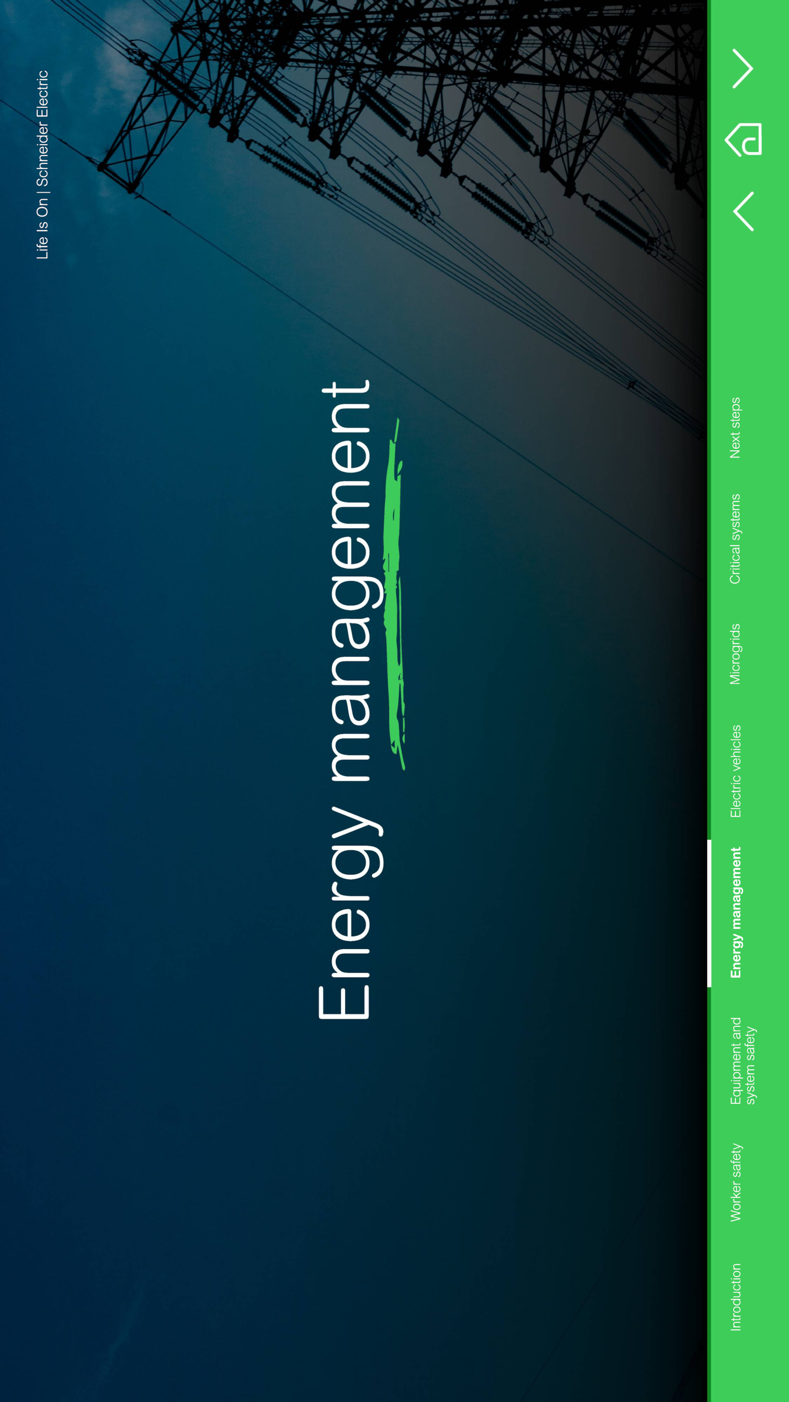 Life Is On Schneider Electric Introduction Worker safety Equipment and Energy management Electric vehicles Microgrids Critical systems Next steps system safety