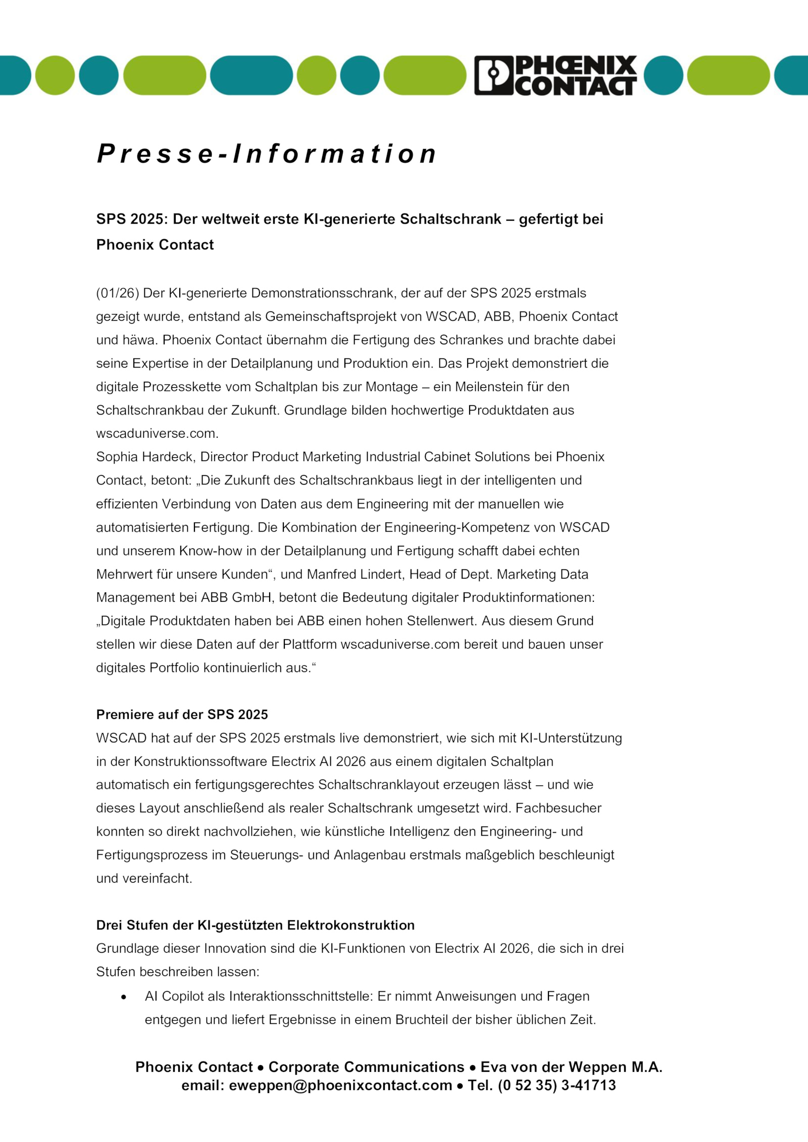 Mehrwert für unsere Kunden“, und Manfred Lindert, Head Dept.Phoenix Contact Corporate Communications Eva von der Weppen M. Fachbesucher