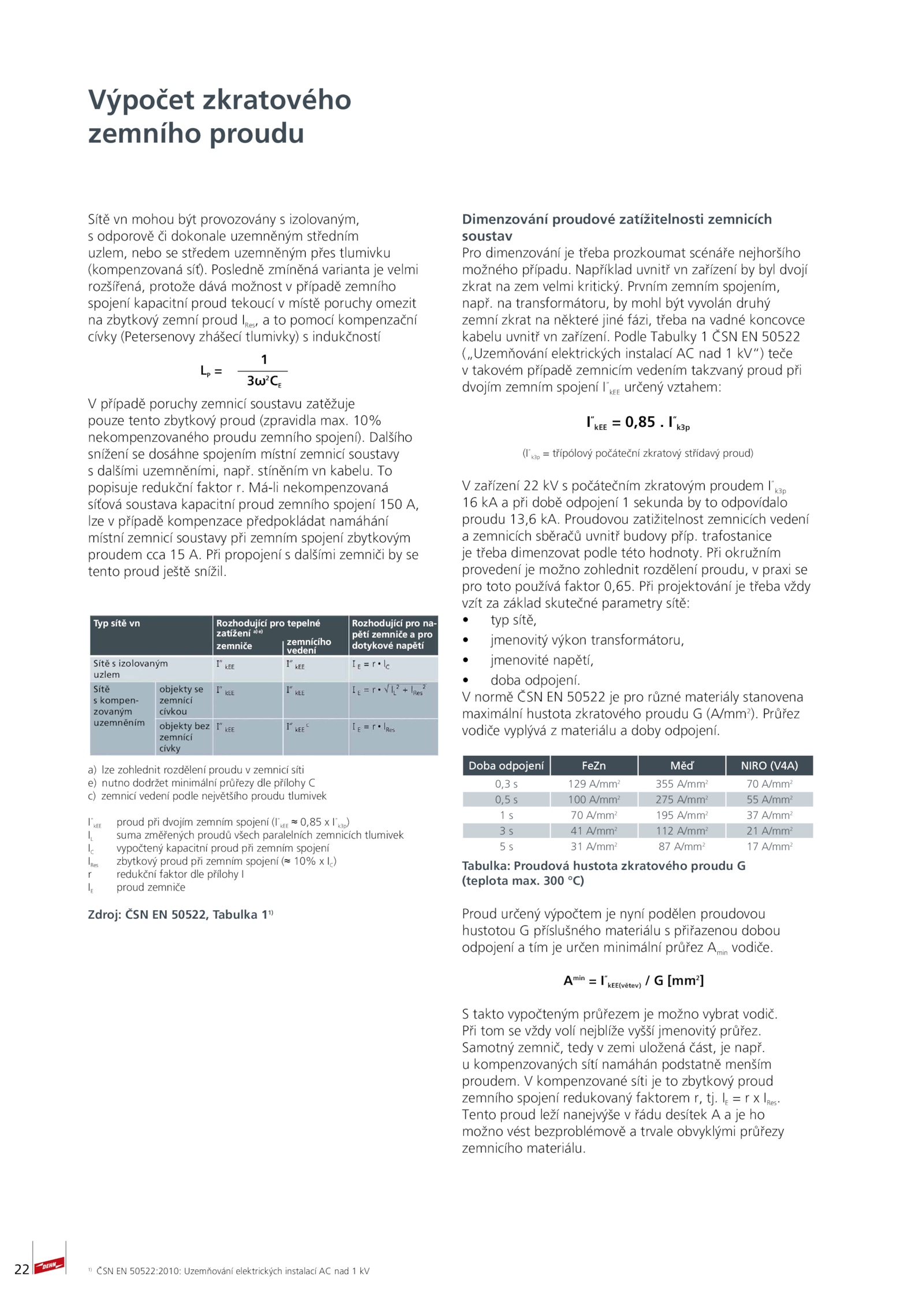 Dimenzování proudové zatížitelnosti zemnicích