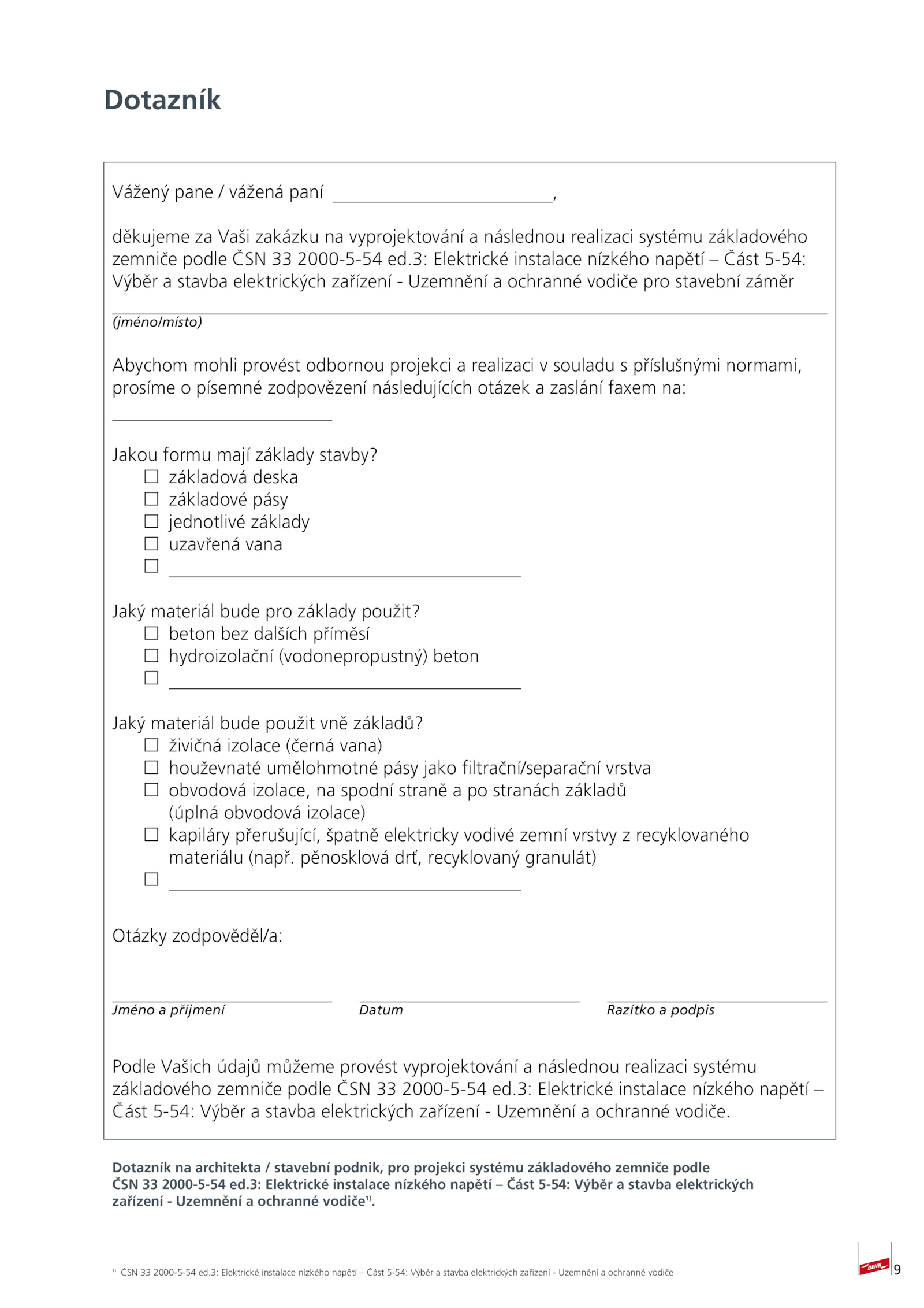 Dotazník architekta stavební podnik, pro projekci systému základového zemniče podle