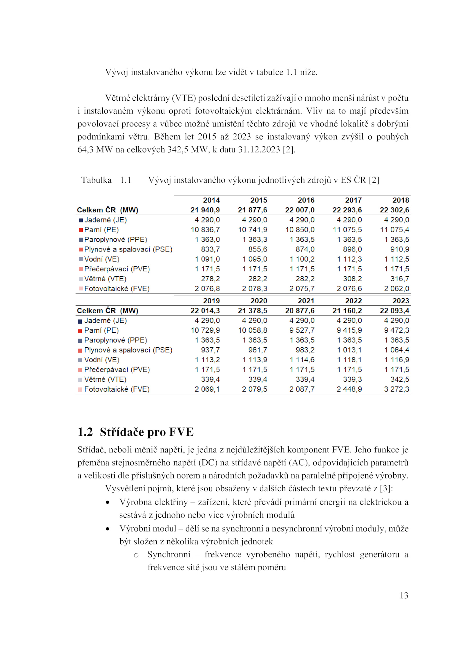64,3 celkových 342,5 MW, datu 31.1 Vývoj instalovaného výkonu jednotlivých zdrojů [2]
