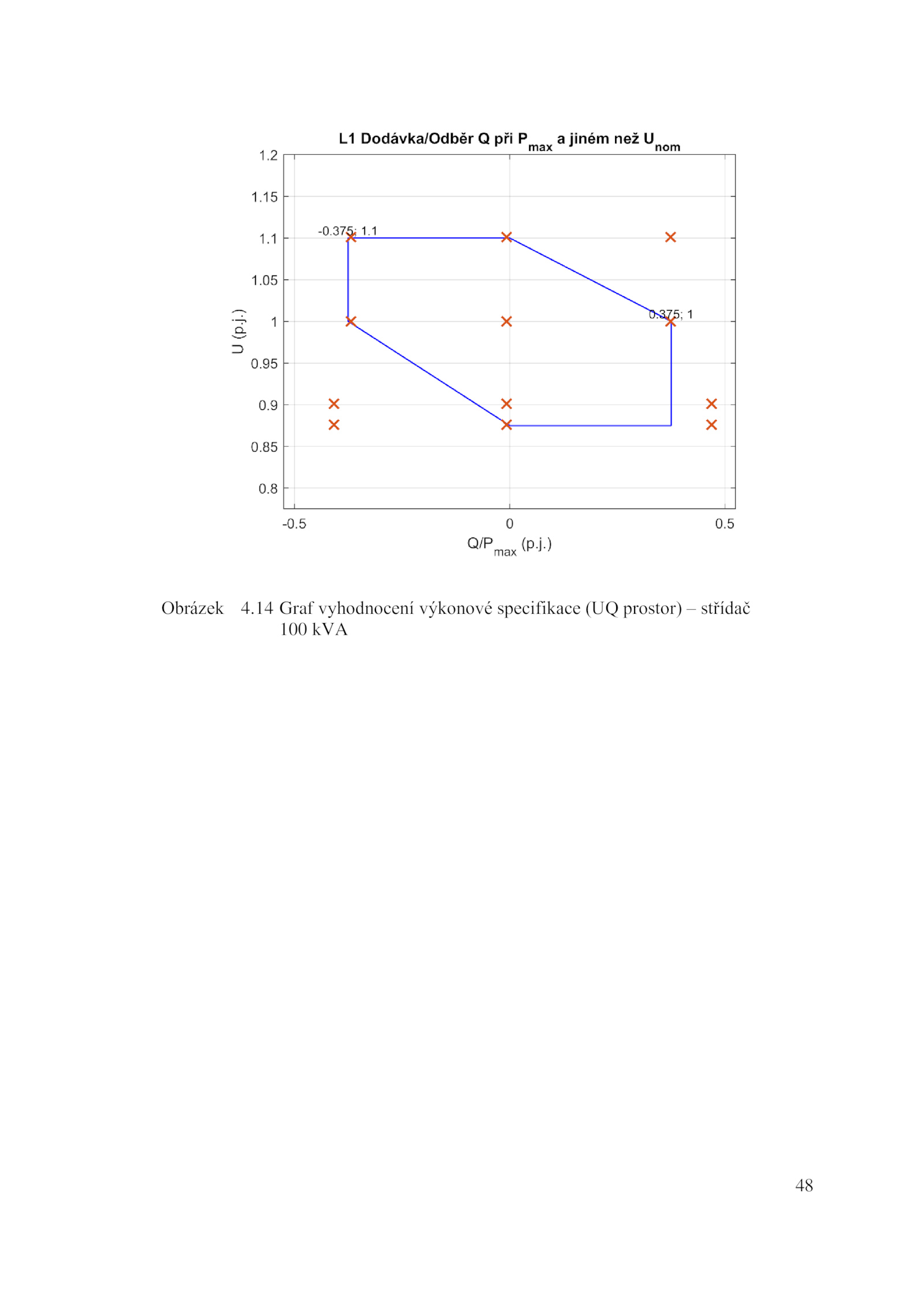 48 Obrázek 4.14 Graf vyhodnocení výkonové specifikace (UQ prostor) střídač 100 kVA